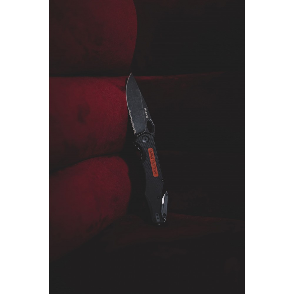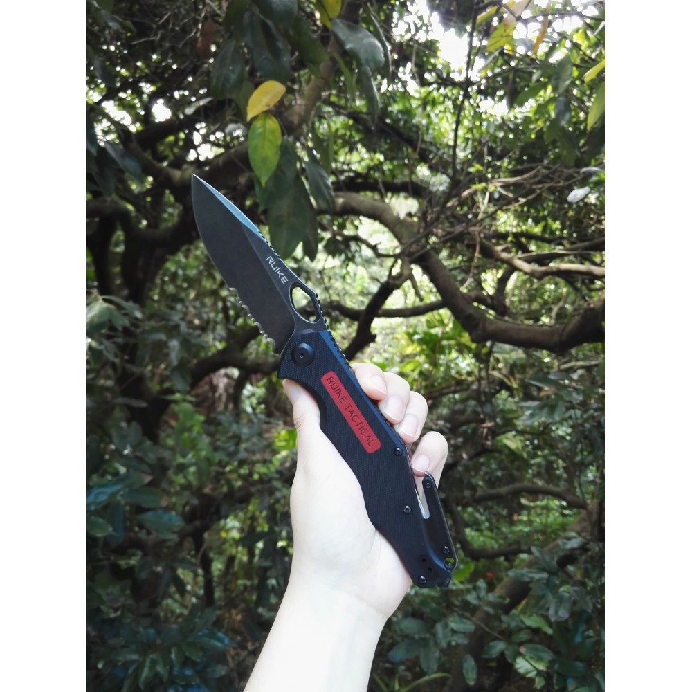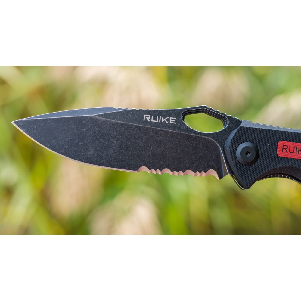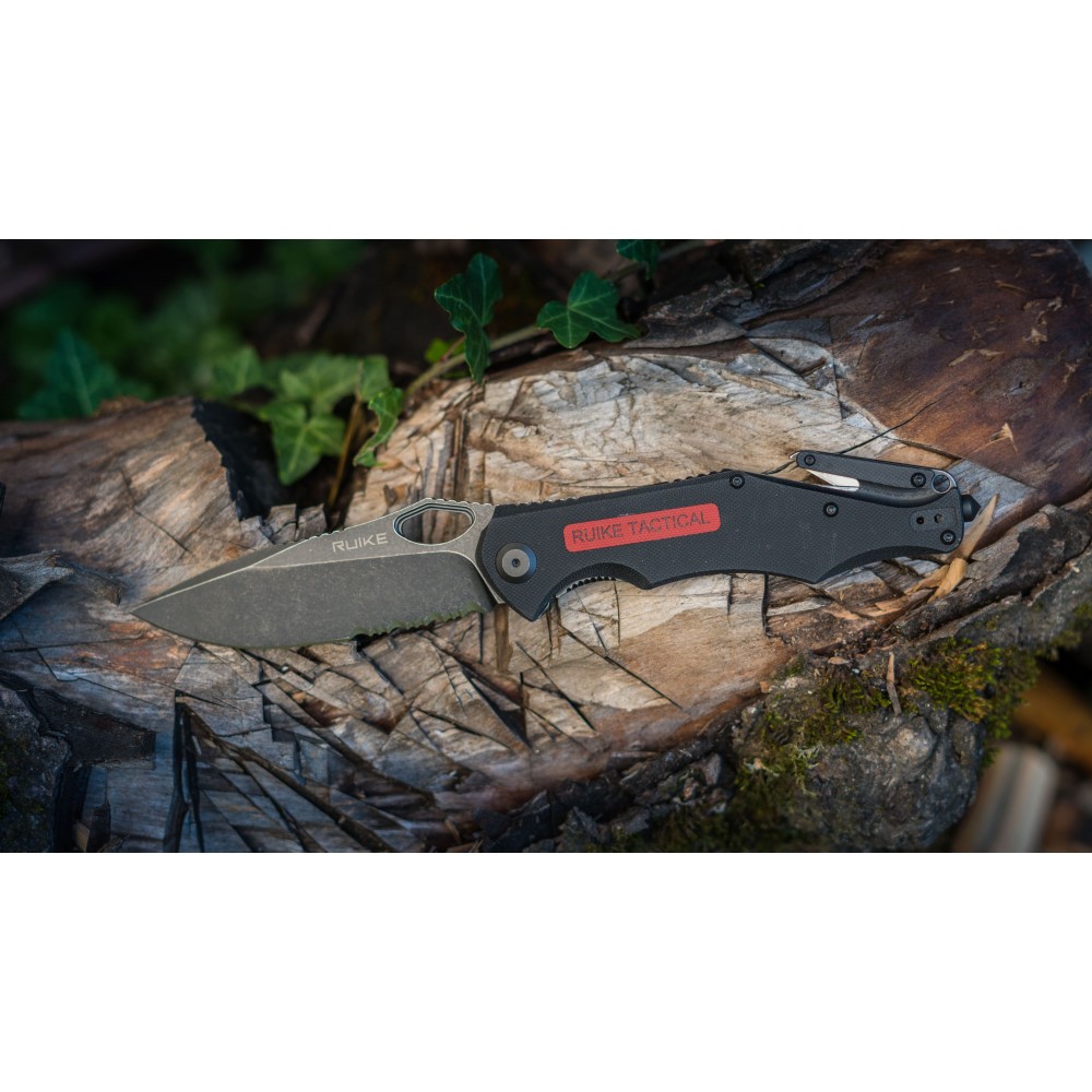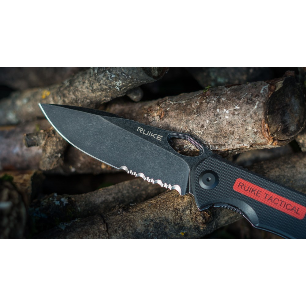 Крім гострого клинка Ruike M195 має у своєму розпорядженні кілька допоміжних елементів: стропоріз і склобій. Вага ножа складає 205 грамів.
