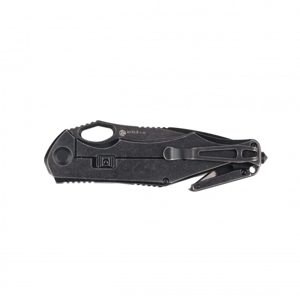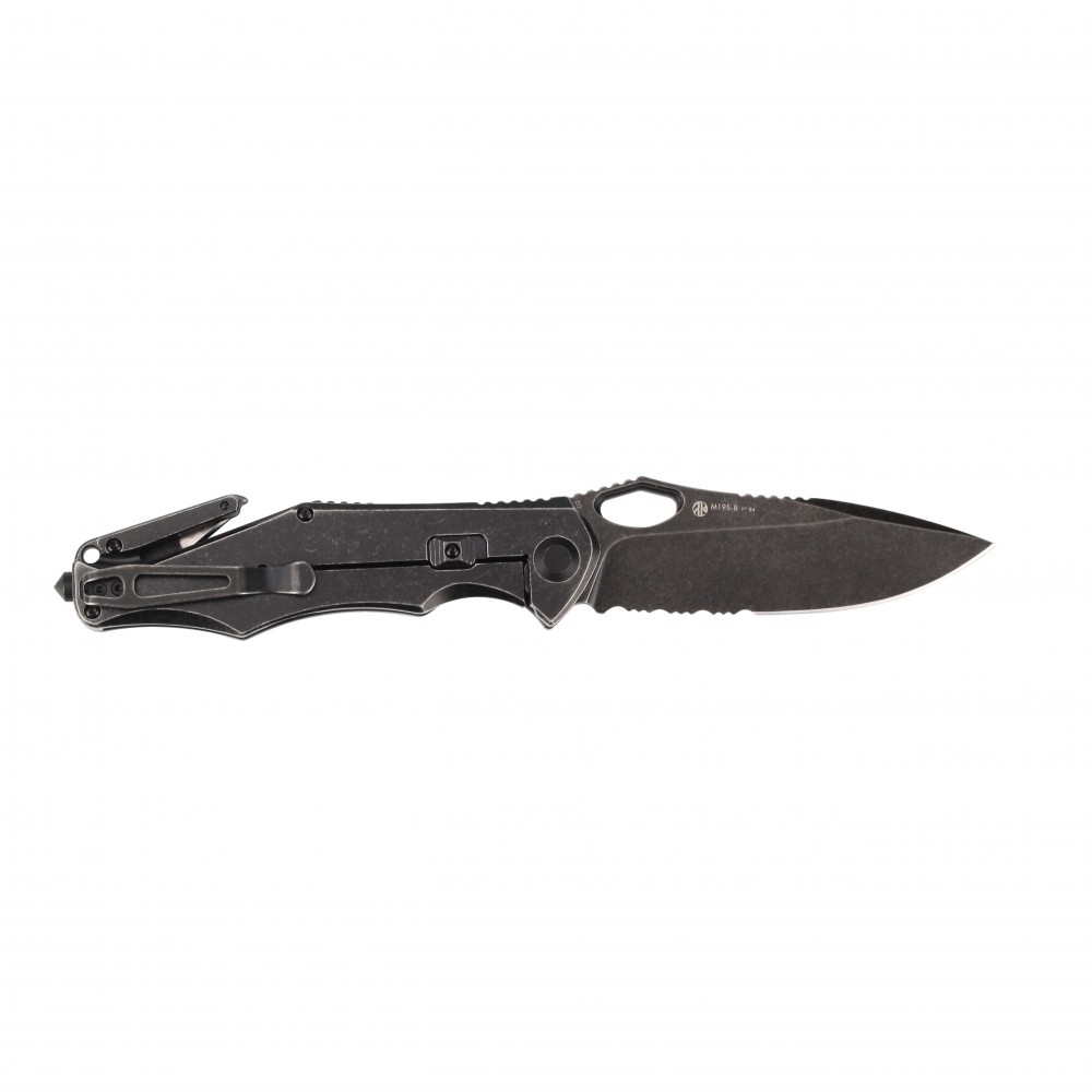 Однією з особливостей тактичного інструменту M195 є наявність комбінованого заточування на клинку довжиною 108 мм. Лезо з прямою крайкою підходить для акуратного різання, в той час як серейтор підвищує ефективність роботи з мотузками, канатами та іншими волокнистими матеріалами, а також з деревиною. Сталь клинка додатково оброблена за технологією black stonewash. Вона надає поверхні матовість, прибираючи блиск і приховуючи подряпини, і робить її чорною.