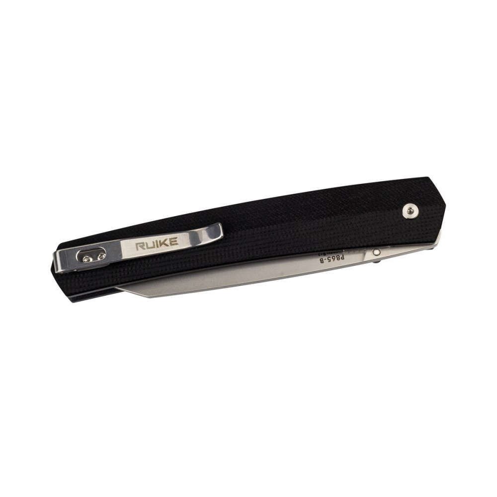 Виробник укомплектував модель Ruike P865-B знімною сталевий кліпсою з глибокою посадкою, яка дозволяє повністю приховати ніж при носінні його в кишені і не дає їй випасти під час пересування.