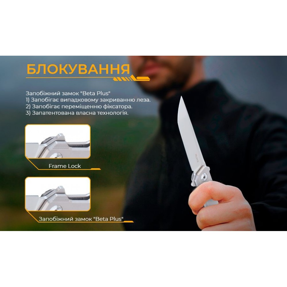 Блокування клинка здійснюється подвійним механізмом: замком Frame Lock із допоміжним замком Beta Plus. Цей метод дозволяє уникнути випадкового закриття конструкції, здатного поранити пальці. Завдяки кульковальницям із високовуглецевої хромованої сталі ніж швидко відкривається. Він фіксується у розкритому положенні однією рукою, що полегшує експлуатацію та дозволяє заощадити час.