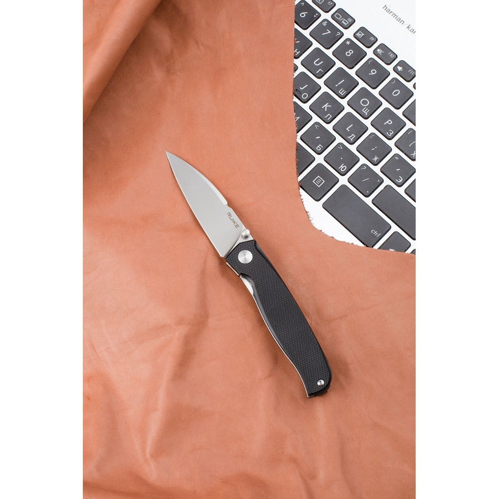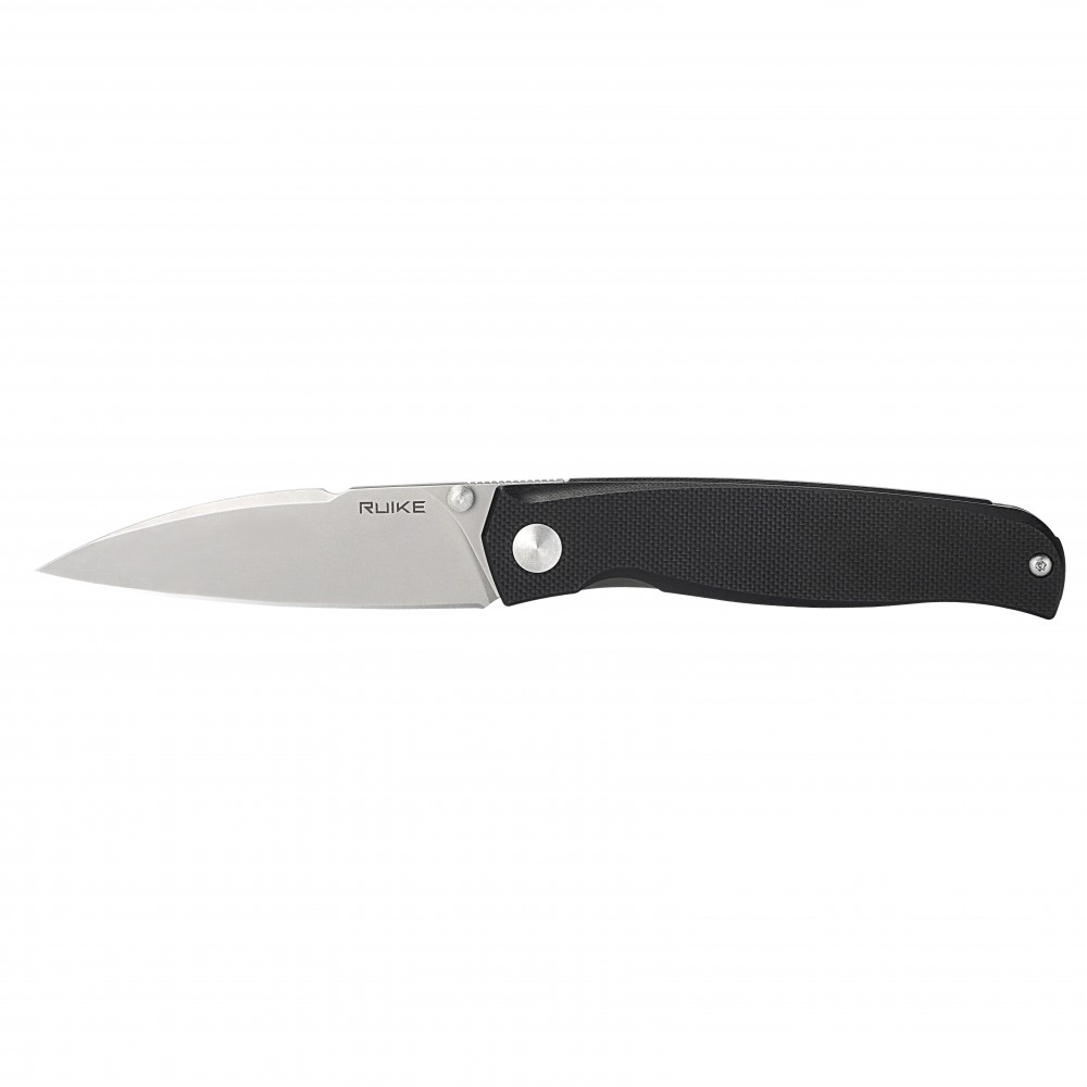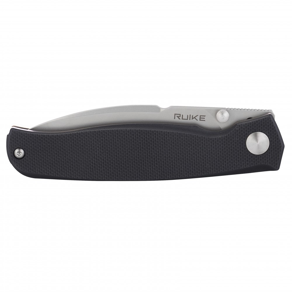 Клинок Ruike M662-TZ має незвичайну форму wharncliffe, що підходить для акуратних розрізів. Твердість сталі дорівнює значенню 58-60 HRC, і з урахуванням товщини леза 3.5 мм, це дає ножу можливість витримувати підвищені навантаження. Довжина клинка складає 74 мм. Оздоблення Bead Blasted надає сталі матовість, яка приховує невеликі подряпини на поверхні.