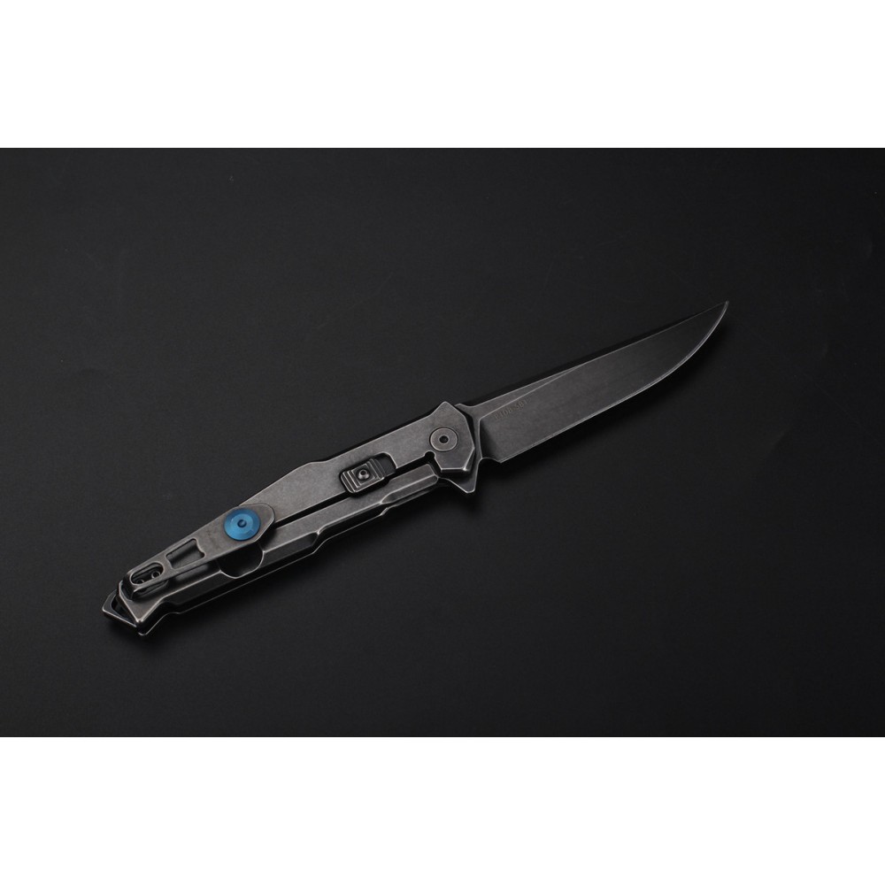 Так, клинок виготовлено з сплаву 14C28N — одного з кращих для кухонних ножів та інших, яким має частий контакт з водою. У нього висока опірність до будь-яких видів корозії, а разом з тим — твердість близько 58-60 HRC, що забезпечує хорошу стійкість заточування. Ріжуча кромка ножа зроблена по всій своїй довжині гладкою. А високу міцність клинку забезпечує і досить велика товщина — 3,1 мм. Крім того, що клинок зроблений чорним, він ще і матовий, що досягнуто шляхом шліфування Stone washed.