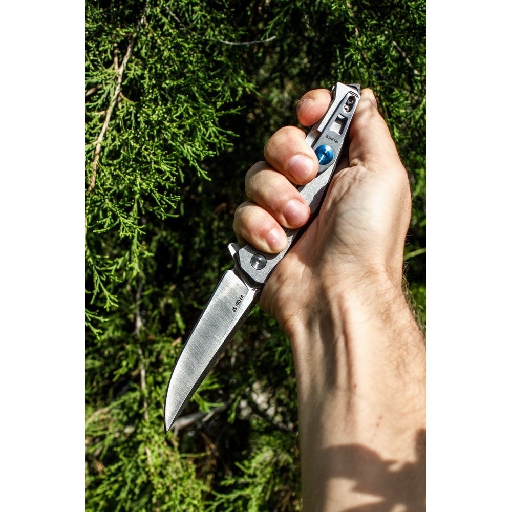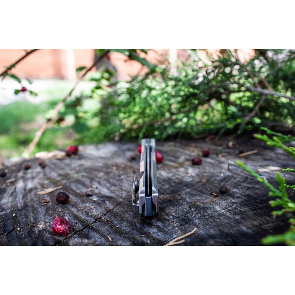 Цей ніж невеликий і дійсно практичний. У закритому положенні його довжина становить 12 сантиметрів, а тому його зручно брати з собою в походи, на полювання або рибалку. Альо при цьому він стане надійним супутником в місті, так як не позиці багато місця в кишені. Закривається лезо за допомогою механізму Frame Lock, який посилення додатковим авторським замком Beta Plus, а тому випадкове відкриття повністю виключено.