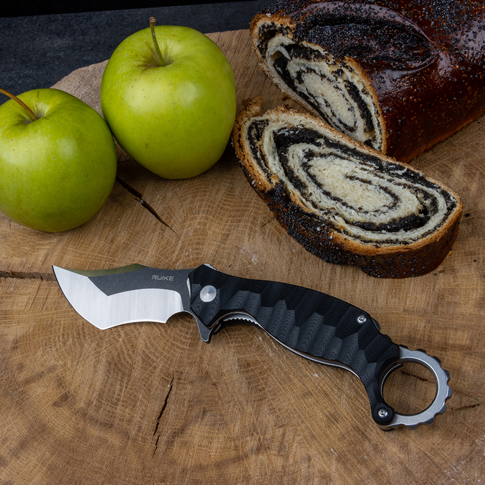 Виріб, про який йде мова, було розроблено для користувачів, що захоплюються тактичними ножами. Зручне заднє кільце, яким забезпечена модель, не тільки гарантує міцний захоплення і утримання, а також забезпечує велику варіативність для ударів і захисту. Словом, це ефективний добротний ніж, який, крім іншого, є першим складним керамбитом фірми Ruike. Надійне пристосування для справжніх цінителів вишуканих і продуманих інструментів.