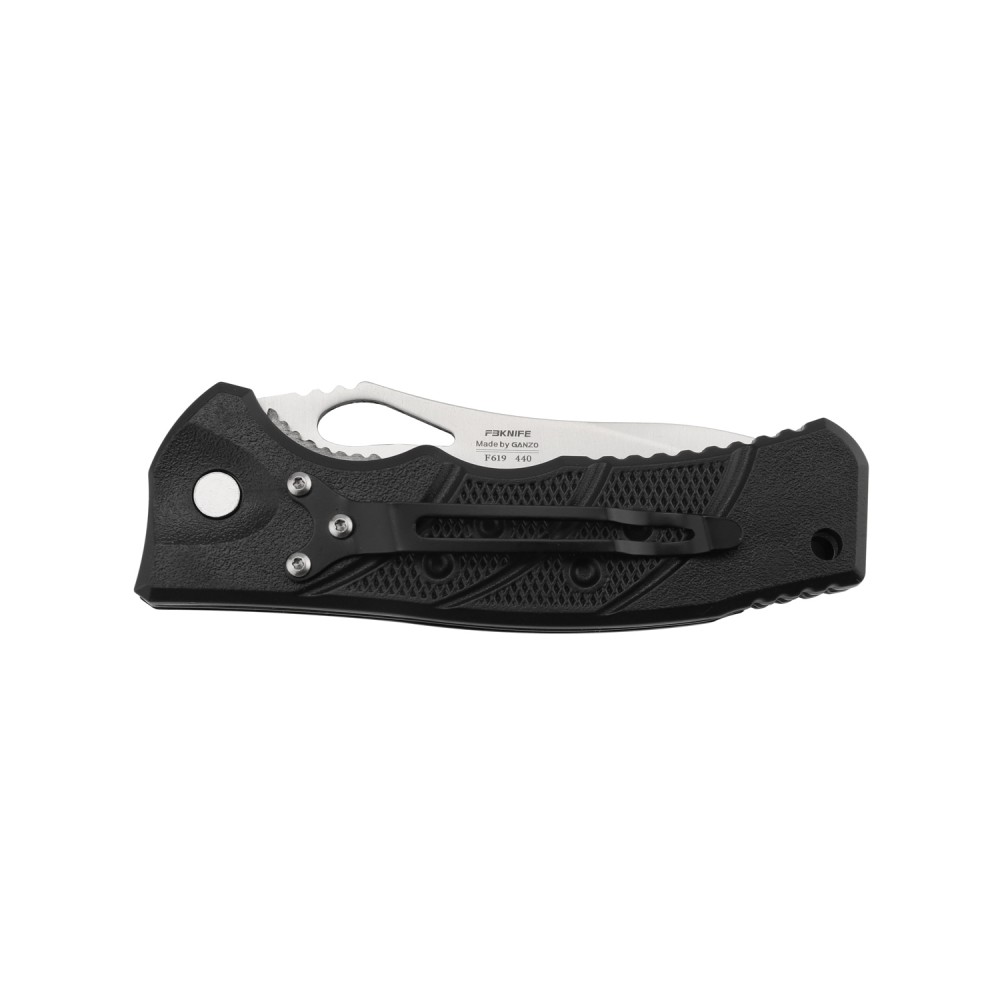 До складу Firebird F619 увійшла сталь марки 440, володіє прекрасними одними якостями. Це міцний матеріал, еластичний, стійкий до впливу агресивного зовнішнього середовища. Захищений від корозії. Ніж добре пристосований для практичного застосування. Пряма заточка леза, виріб годиться для різних видів робіт, з якими справляється однаково ефективно. До того ж, лезо довго тримає заточку. Біля основи клинка є опорний ділянку з ребристим обухом для більш зручної нарізки твердих матеріалів.