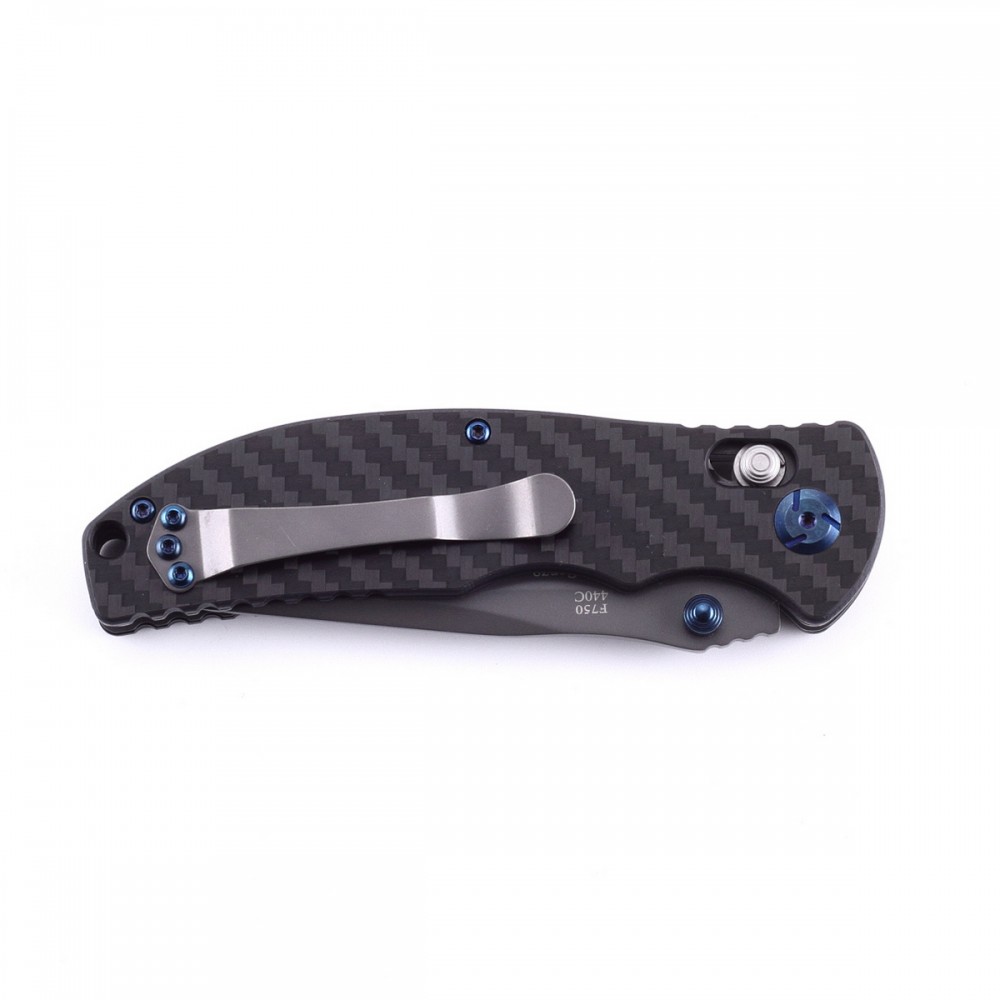 Деталі рукоятки виготовляються з вуглепластика. Це матеріал з композитною структурою, яка у змозі конкурувати зі сталлю по міцності, але при цьому набагато легше металу. Накладки пригвинчуються до бази з обох сторін. Крім того, до однієї з накладок прикручена металева кліпса, яка дозволяє закріпити ніж під час перенесення. У моделі Firebird F7503-CF ручка зроблена чорної. Виробники передбачили і можливість кріплення до ножа ремінця для носіння на зап'ясті. Для цих цілей, у рукоятці зроблено отвір.
