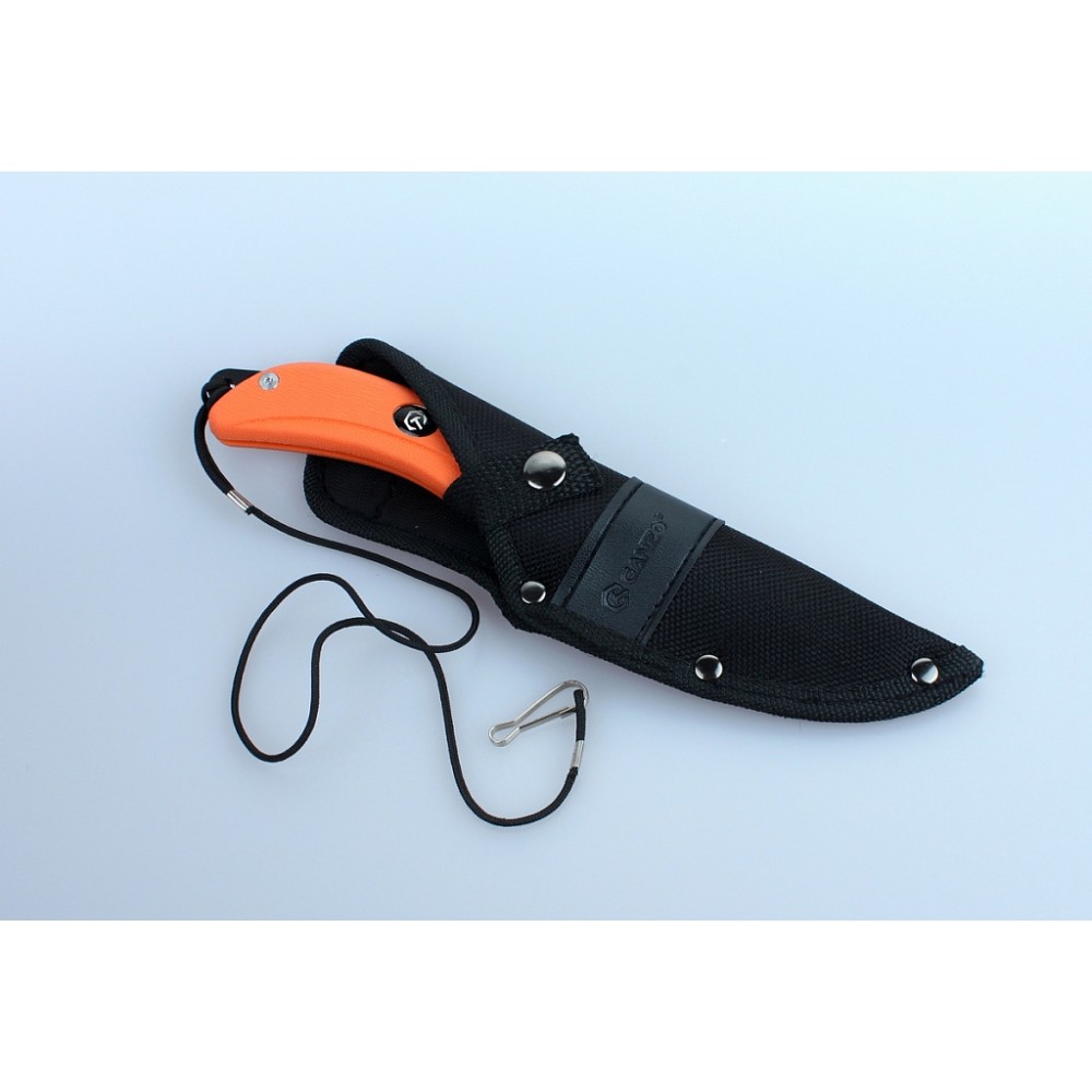 Рукоятка цього ножа має прогумовану поверхню і щільно лежить в руці, не вислизаючи при прикладанні зусиль. Вона може бути помаранчевої або чорної залежно від того, який варіант вибере кожен з покупців.