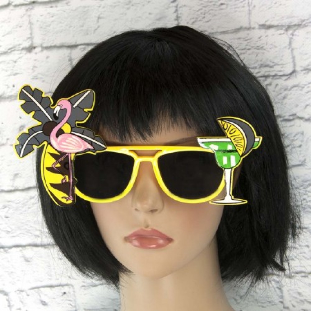 Окуляри Гавайські Фламінго Коктейль (жовті) – це окуляри для пляжної вечірки, корпоративу, фотосесії чи дня народження. Окуляри для вечірки Коктейль мають жовту пластикову оправу з пальмою та рожевим фламінго з одного боку та келихом мартіні з іншого. Друга поширена назва цих окулярів: окуляри фламінго, окуляри гавайський тропічний коктейль. Доповнити обаз до цих окулярів допоможе гавайська атрибутика: орхідеї леї, гавайські костюми, які ви можете купити оптом у нашому інтернет-магазині. Забавні карнавальні окуляри коктель повеселять друзів і привернуть увагу до Вашої персони.