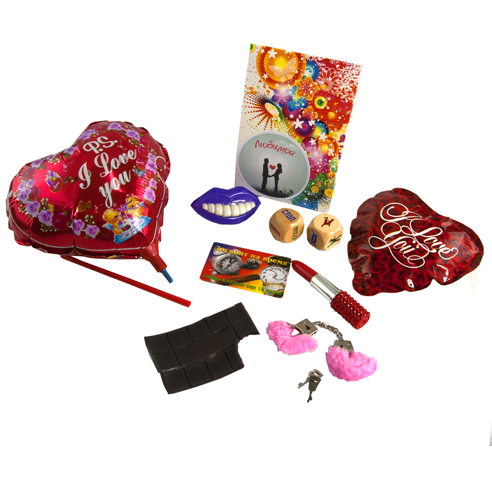 Оригінальний подарунок 67102 УЛЮБЛЕНИЙ це чудовий сюрприз дівчині на День святого Валентина або річницю весілля. Незвичайні та екстравагантні дрібниці зібрані в яскраву коробку. Так що Вам не потрібно навіть замислюватися про упаковку подарунка, Ви можете купити подарунковий набір і відразу подарувати свій половинці. Посвідчення Богиня Любові та карта Дисконт на час з гумористичним написом гарантовано викличуть посмішку та розвеселять Вашу пасію. М'який брелок серце стане невеликим доказом Вашого великого кохання. Магніт шоколадка з прикольним написом прикрасить холодильник і розважить гостей веселим текстом. Кубики сімейні пози камасутри, здивують Вашу кохану. Кістки дерев'яні, на кожній стороні намальовані різні пози та цікаві місця, де їх можна випробувати. Такі кістки урізноманітнюють Ваше любовне життя і додадуть пікантності стосункам. Доповнять цей незвичайний набір хутряні кайданки на пальці. За допомогою цих нетрадиційних прикрас Ви можете пограти в амурні ігри з коханою людиною або просто посміятися від душі. Такий прикол для дорослих дасть змогу з гумором провести ніч. Придбати цей незвичайний подарунок для коханої Ви можете в інтернет-магазині Карнавал Жартів. До складу входить: кулька на паличці, кулька, що самонадувається, кубики сімейні Камасутра МОДЕРН, наручники на пальці, дисконтна карта Дисконт на час, свисток губи, брелок вінтажний серце, магніт шоколадка.