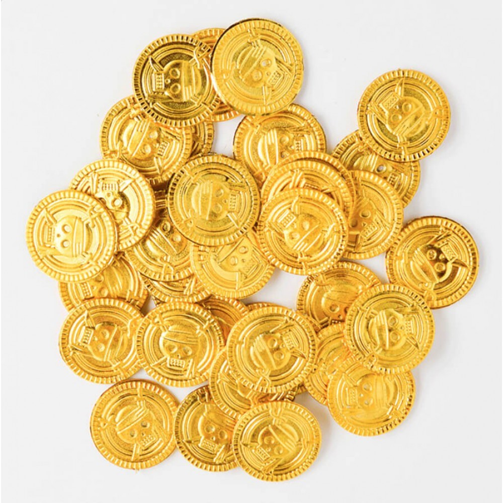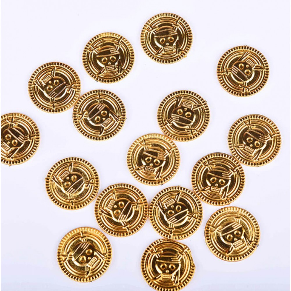 Піратські золоті монети — ефектний аксесуар, який допомагає створити атмосферу справжньої пригоди. Яскравий золотий колір відразу привертає увагу і робить декор або костюм більш реалістичним.