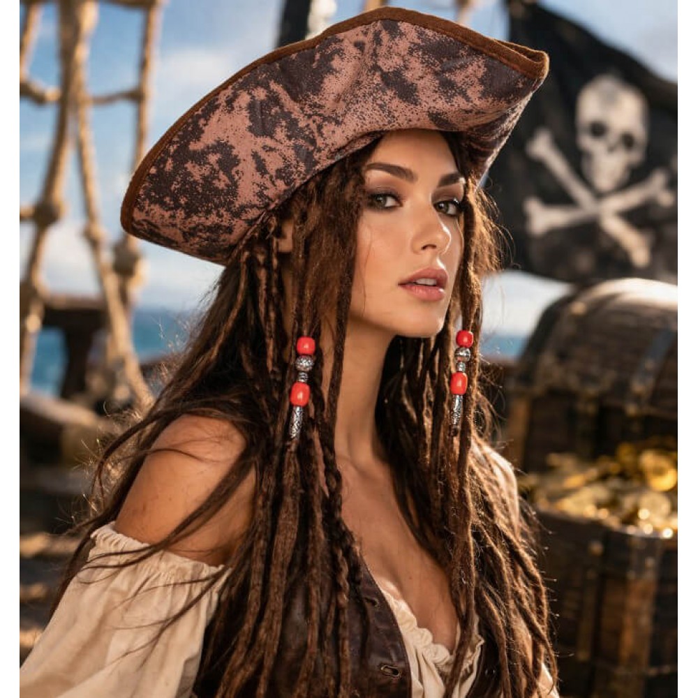 Піратський капелюх з дредами — готовий аксесуар, який відразу формує образ без додаткових деталей. Капелюх вже поєднаний з перукою, тому не потрібно підбирати елементи окремо.