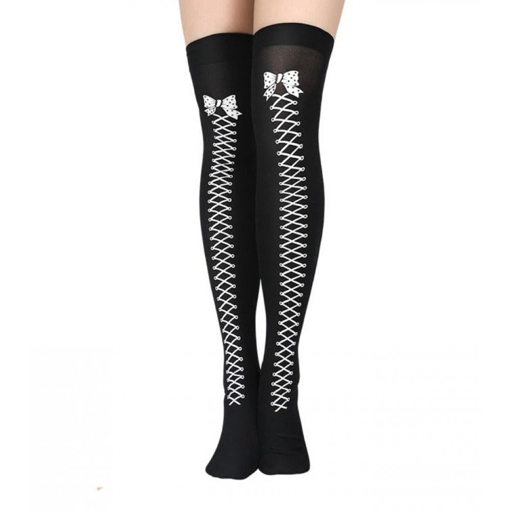 Панчохи для Геловіну чорні «шнурівка та бантики» 65×8 см, універсальний розмір