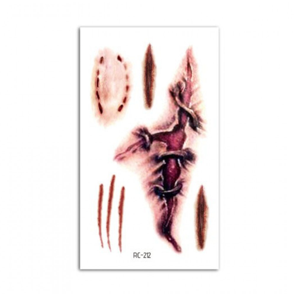 Перекладне татуювання "Рвана рана і шрами" — тату-стікер для Хелловіну, ефект порізів і швів 105×60 мм