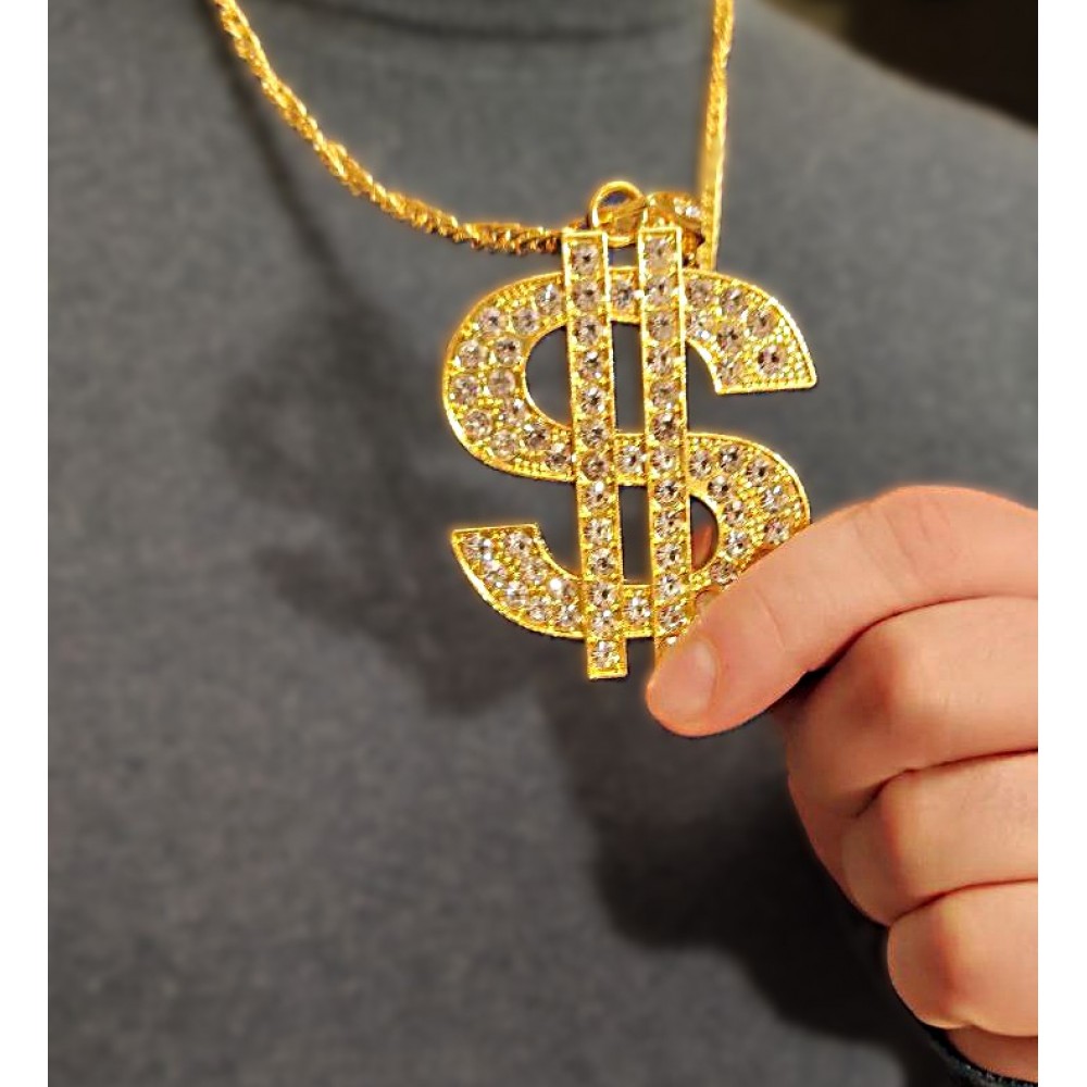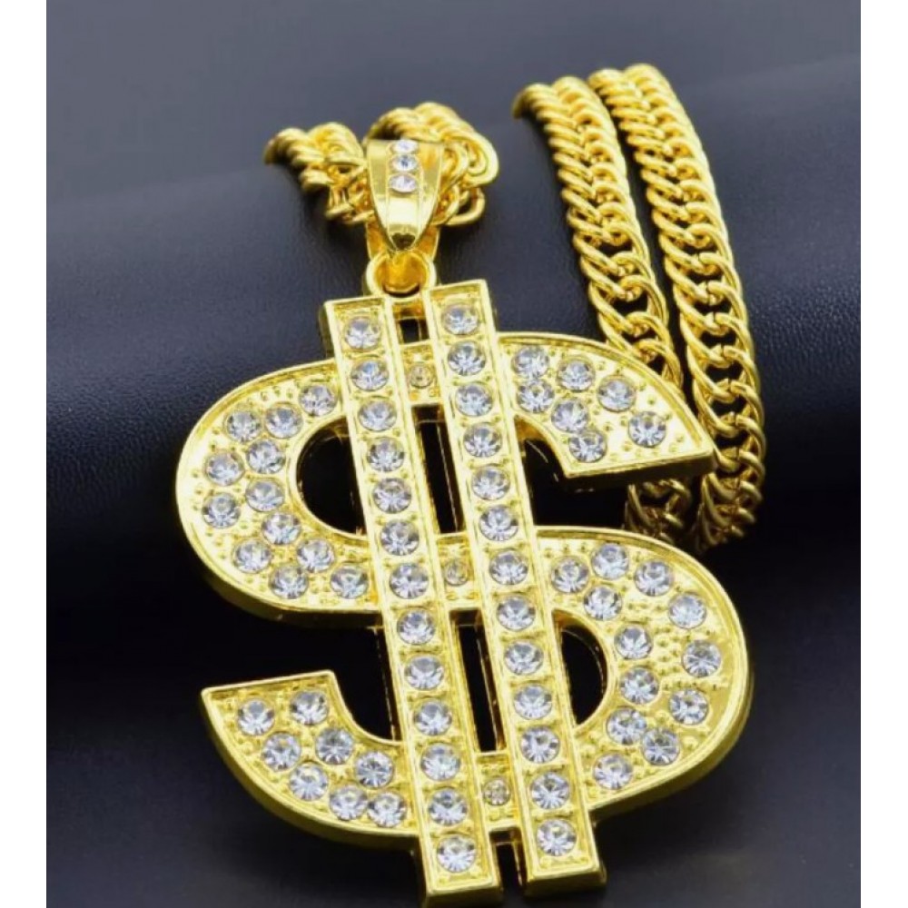 У світі, де кожна деталь має значення, масивна підвіска у вигляді символу долара стає не просто прикрасою, а справжньою заявою про свої амбіції та смак. Цей розкішний кулон, що виблискує безліччю кристалів на золотистій поверхні, привертає увагу і створює неповторний образ свого власника.