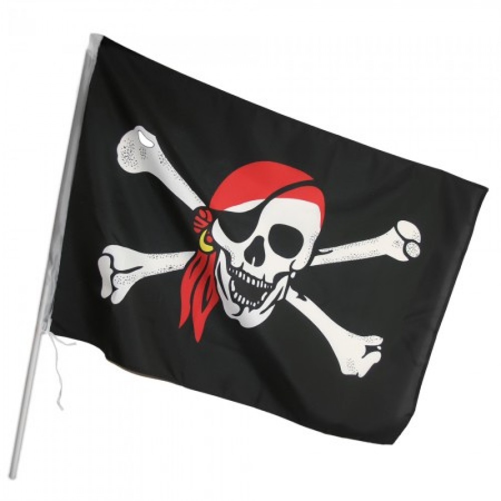 Прапор 90х60см - невід'ємний атрибут для декору піратської вечірки. На чорному тлі прапора розташований білий череп Веселий Роджер з червоною банданою та золотим сережкою. На чорному тлі прапора розташований білий череп з пов'язкою та 2 кістками. Прапор корсара має пластикову ручку, на яку приклеєно прапор розміром 90х60см. Доповнити образ пірата можна за допомогою Карнавальний костюм Розбійник для чоловіків або Карнавальний костюм Розбійниця для жінок, капелюхом Пірат з пов'язкою або Пірату фетр. Серед різноманітності карнавальних капелюхів інтернет магазин Подарок-ТУТ представляє Вам лінійку піратських капелюхів трикутників: Капелюх Пірата Веселий Роджер трикутник, Капелюх Пірата трикутник фетр, Капелюх Пірата фетр і для милих дам Капелюх Піратки з кружок. Жоден корсар та піратська розбійниця не залишиться без костюма. Наш магазин пропонує товари оптом та для дропшиперів, ви можете оформити замовлення на сайті Подарок-ТУТ та задати будь-які запитання, що цікавлять менеджер, замовивши дзвінок на нашому сайті