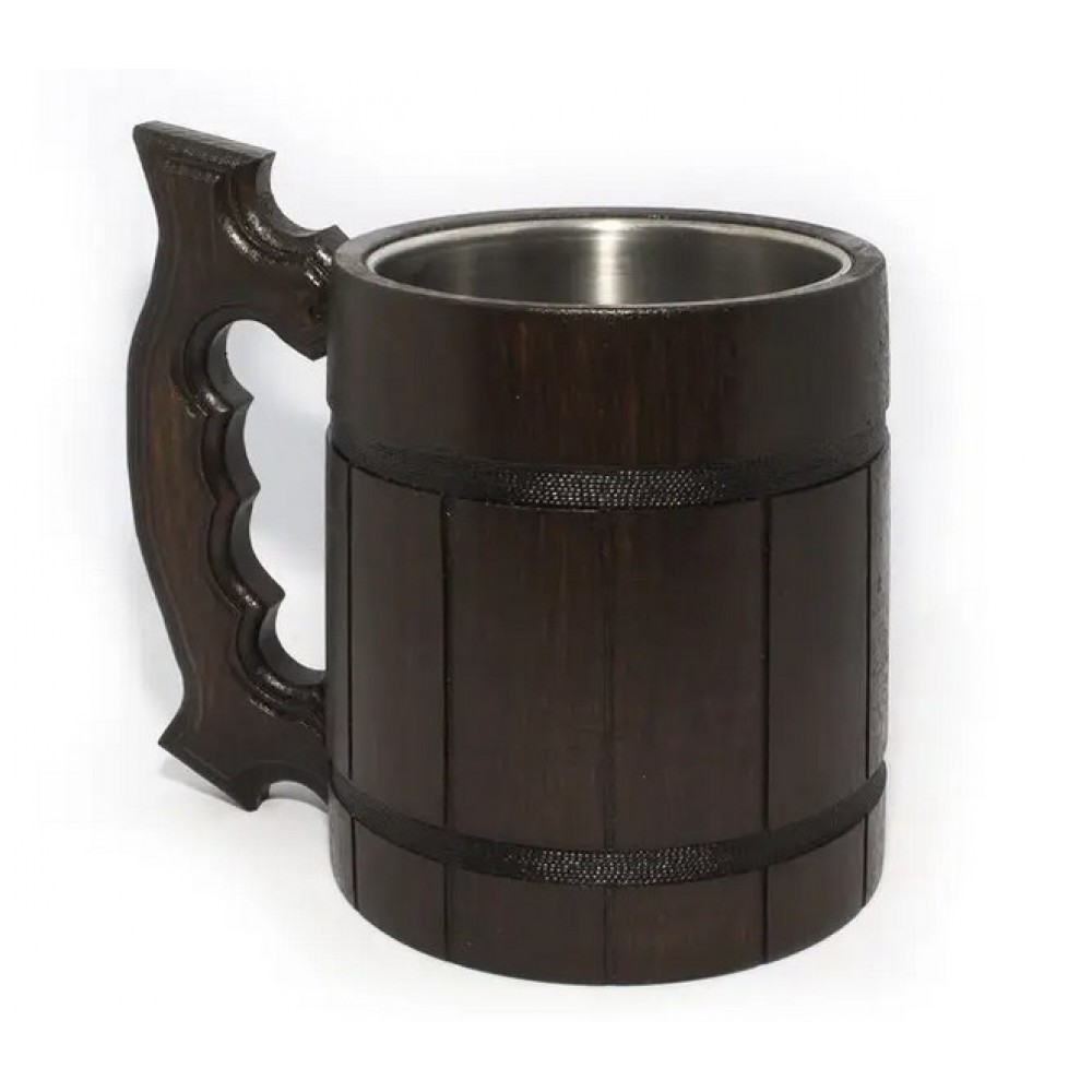 Пориньте в атмосферу затишних пивних посиденьок за допомогою пивного дерев'яного бокала з металевою вставкою.