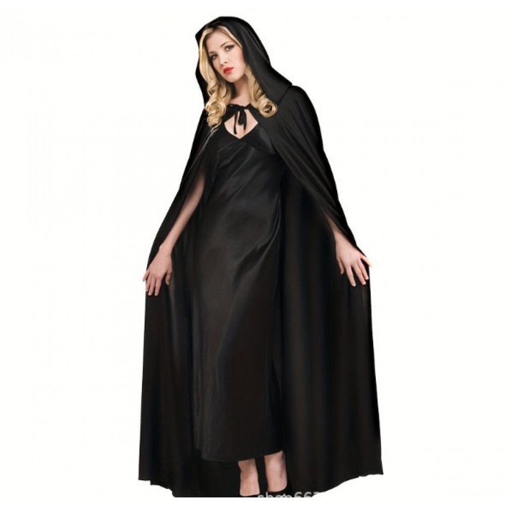 Плащ-накидка чорний, 170 см (без урахування капюшона) — для Хелловіну та косплею