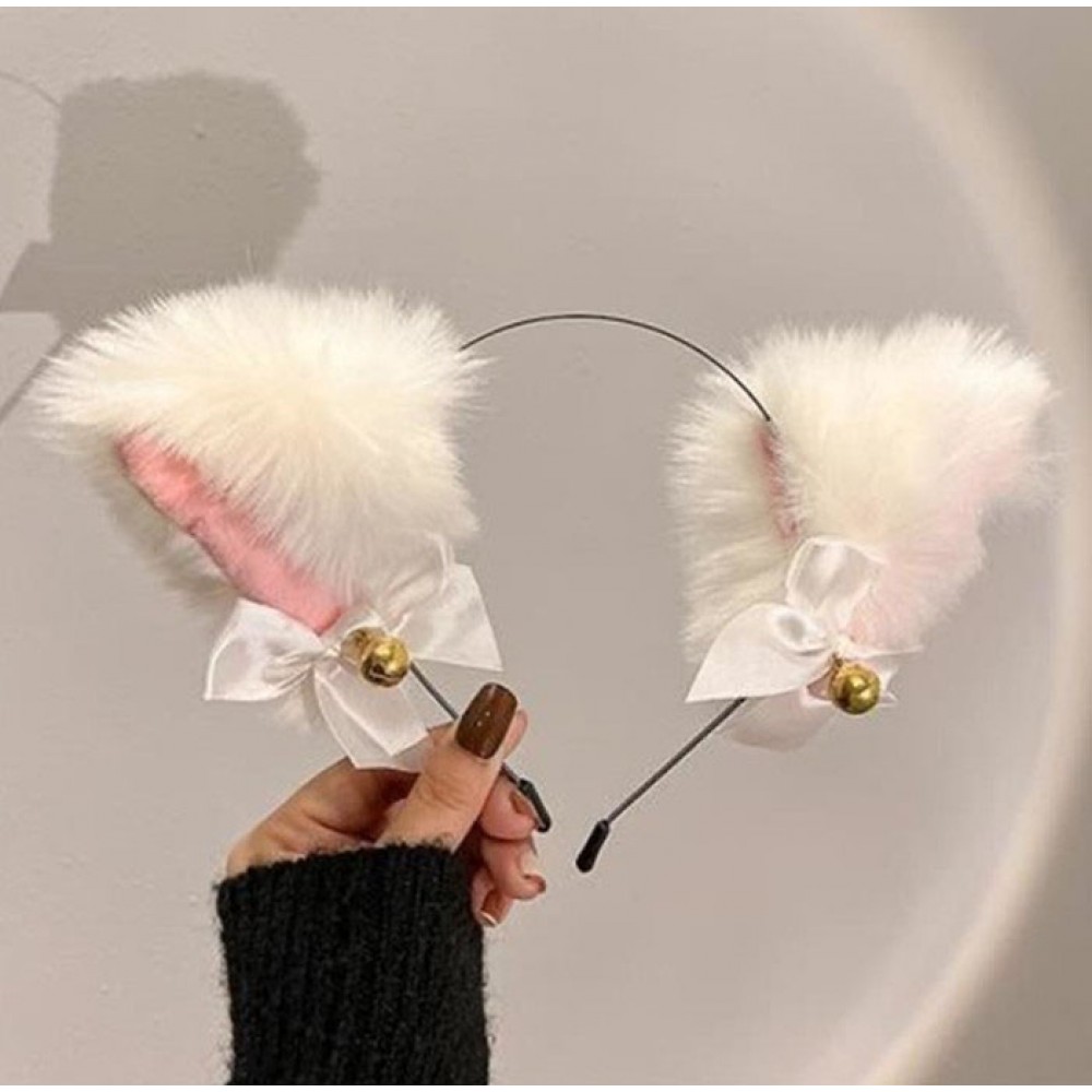 Плюшевий обруч «Білі котячі вушка»: пухнасті вушка з бантиками та дзвіночками