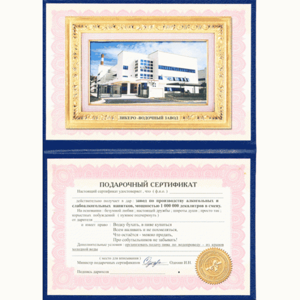 Подарунковий сертифікат Лікеро-горілчаний завод