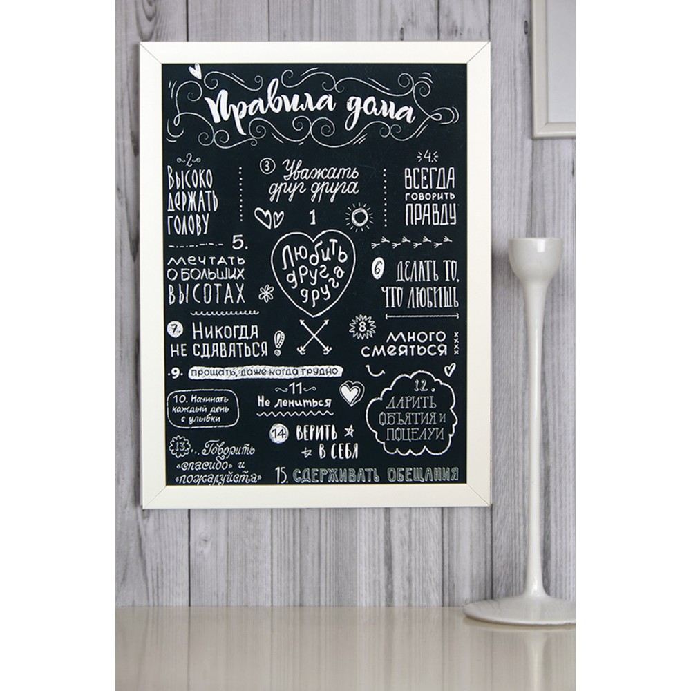 Постер мотиватор 56001 ПРАВИЛА ДОМУ А4 - стильний постер у рамці. Це чудовий та незабутній подарунок на будь-яке свято. Містить 14 основних правил будинку. Наприклад - Поважати один одного, завжди говорити правду, ніколи не здаватися і багато інших. Постер можна повісити на стіну або іншу поверхню, поставити стіл. Мотивуючий постер надрукований на матовому фотопапері та вставляється у легку рамку з склом, задником та кріпленнями на стіну. Інтернет магазин Подарок-ТУТ пропонує купити цікаві та розвиваючі ігри григінальні подарунки за доступними цінами.