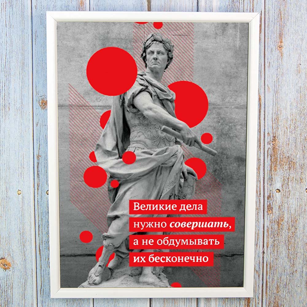 Постер мотиватор 56404 ВЕЛИКІ СПРАВИ А4 - продовжує добірку постерів думки великих людей. Надихаюча фраза Великі справи треба робити, а не обмірковувати їх нескінченно, відомого давньоримського полководця Юлія Цезаря, засуджує нерішучість і підштовхує до дії. Постер можна повісити на стіну або іншу поверхню, поставити стіл. Постер надрукований на матовому фотопапері та вставляється у легку рамку з склом, задником та кріпленнями на стіну. Оптовий інтернет магазин Подарок-ТУТ пропонує купити цікаві та оригінальні подарунки за доступними цінами. Ваш подарунок з спонукає свого нового власника на рішучі кроки, даруючи надію та оптимізм щодня!