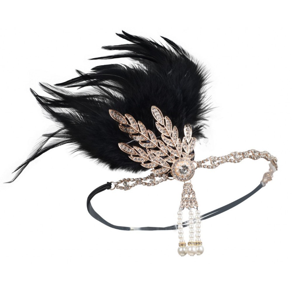 Пов'язка «Ніч Гетсбі» з чорним пером і кристалами для ретро-вечірки