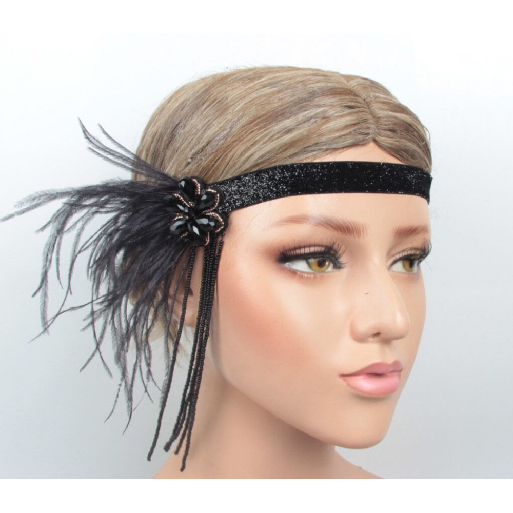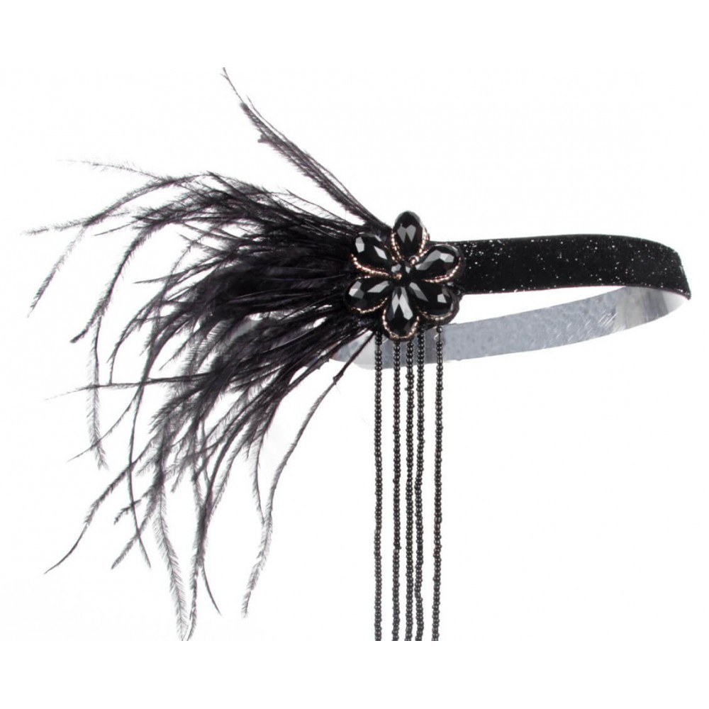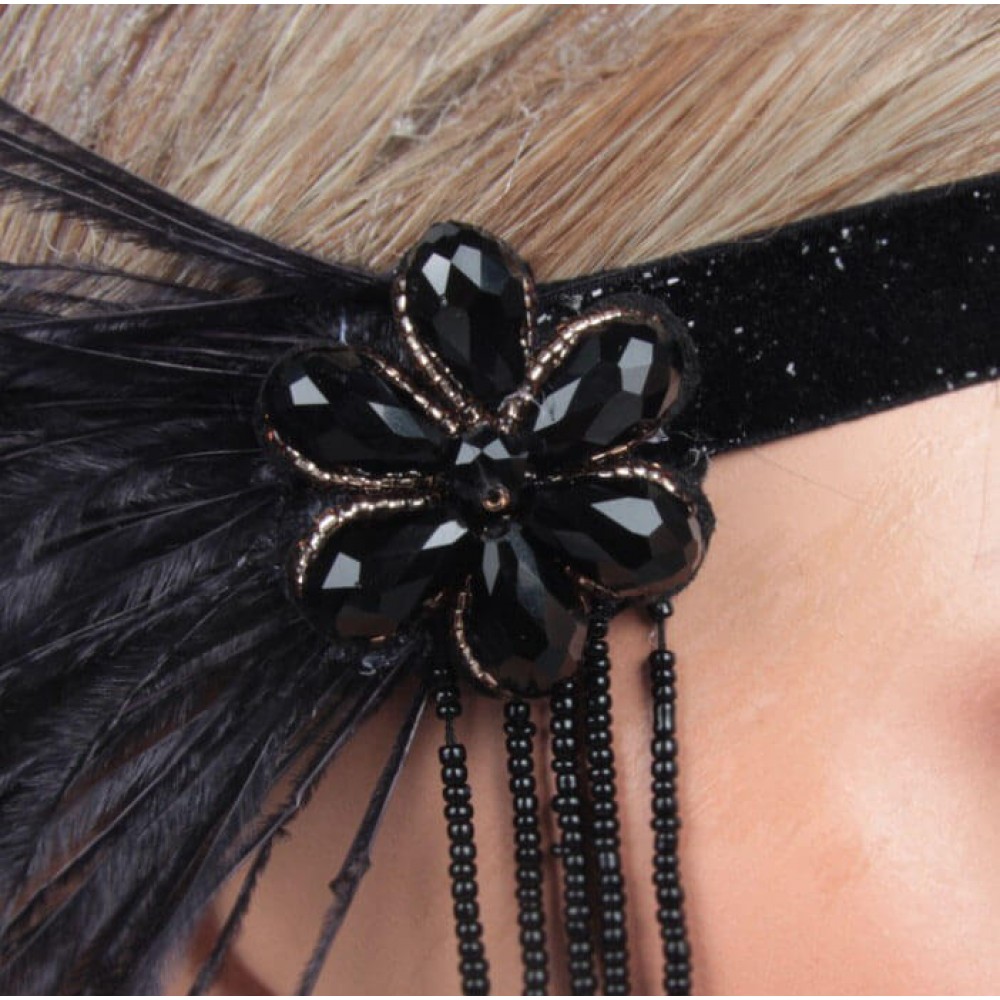 Пов'язка на голову Гетсбі «Чорна орхідея» з пір'ям і китицями
