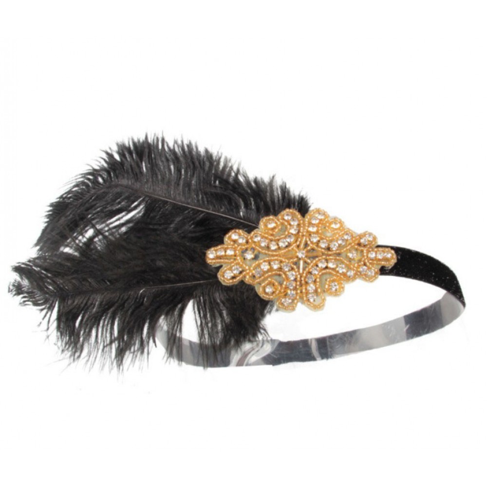 Ця пов'язка — чистий дух ревучих 20-х. Контраст чорного пера та вишуканого золотого орнаменту зі стразами створює той самий ефект, який асоціюється з вечірками в стилі Гетсбі, джазом та розкішними балами. Прикраса виглядає виразно, але не перевантажено — ідеальний акцент для образу flapper.