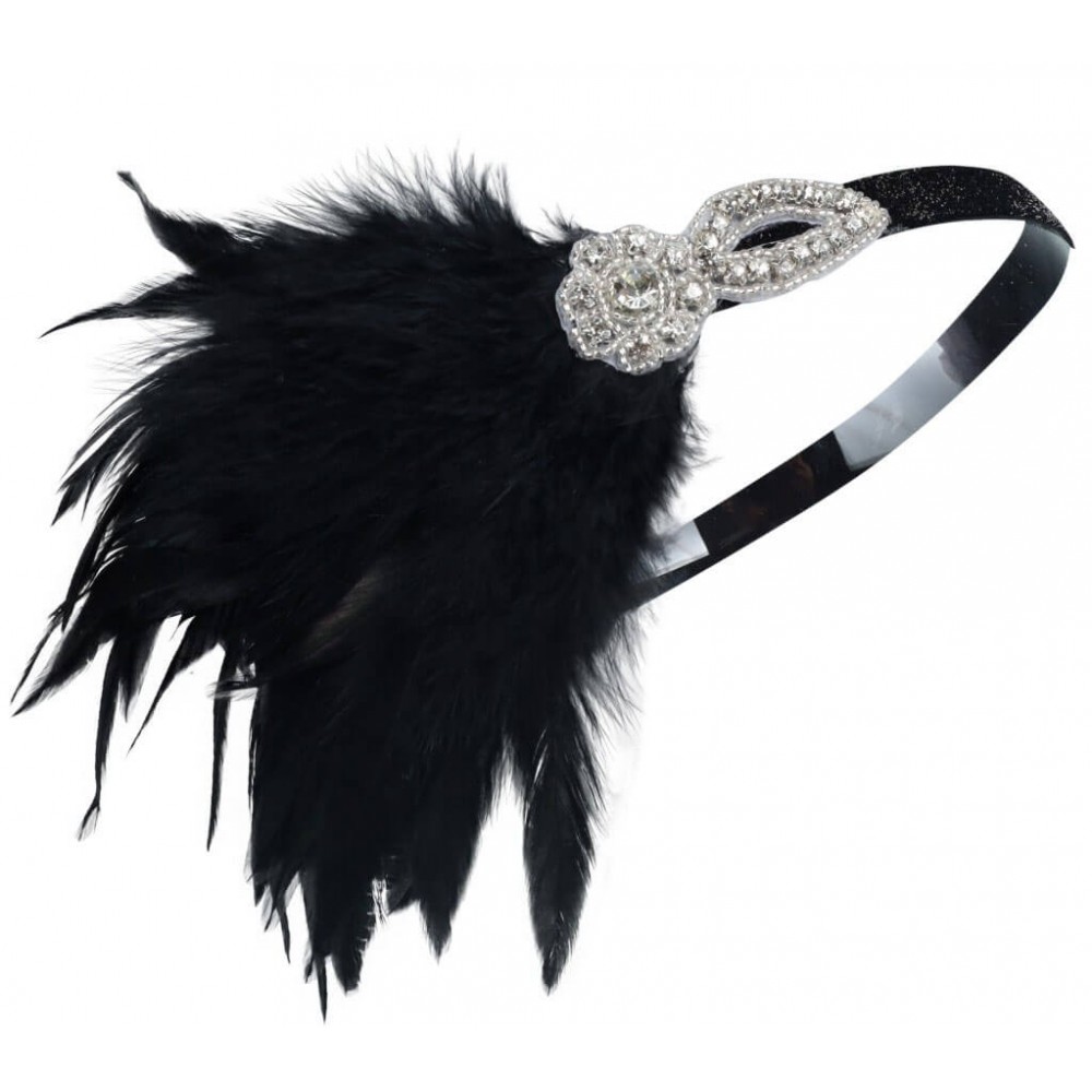 Якщо ви шукаєте аксесуар для вечірки у стилі гетсбі в Україні, який підкреслить образ і не виглядатиме «дешевою бутафорією», ця пов'язка — саме той варіант. Чорний колір, блиск кристалів та живий рух пір'я створюють атмосферу справжніх ревучих двадцятих.
