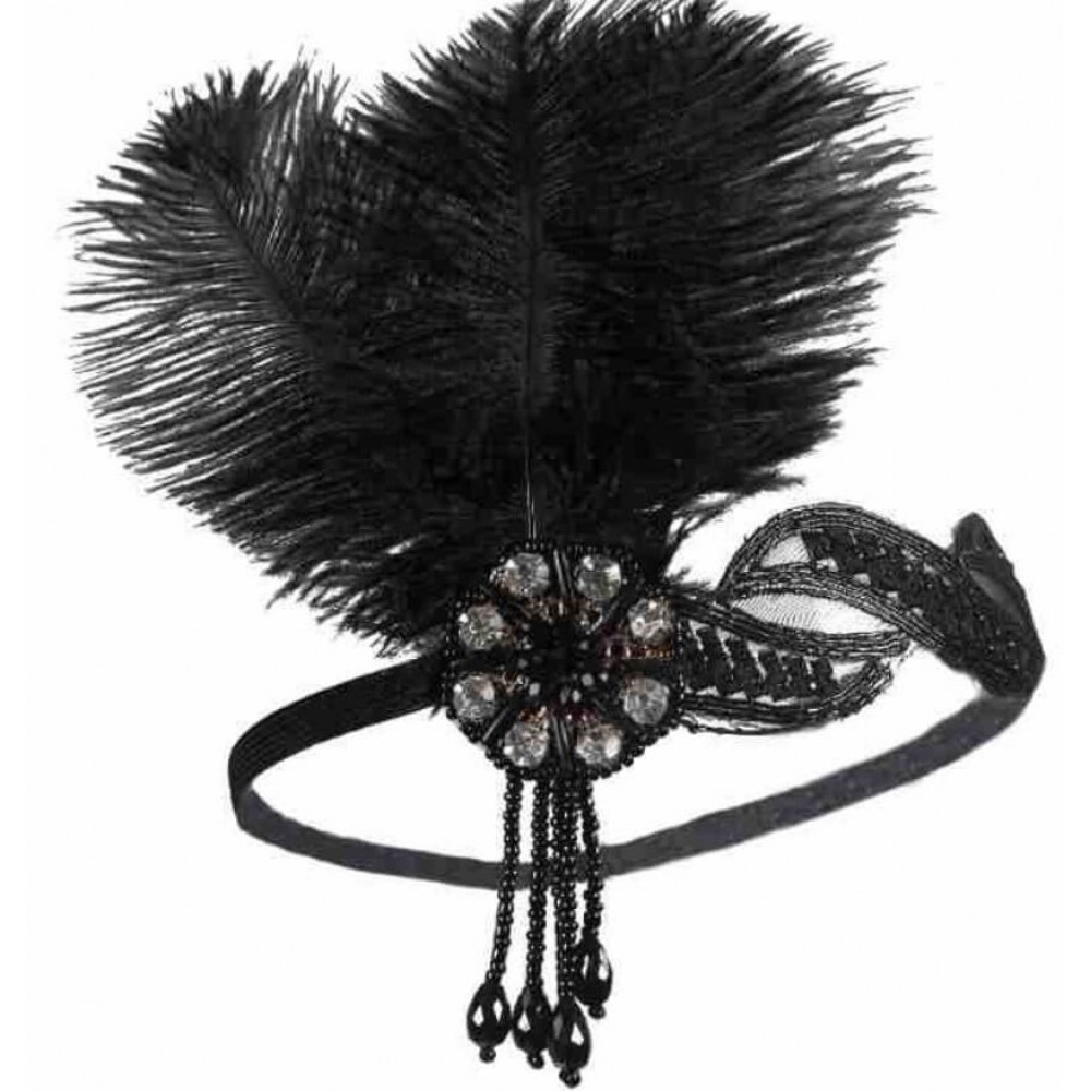 Ефектна пов'язка в дусі ревучих двадцятих — саме той акцент, який перетворює звичайний образ на справжній стиль Гетсбі. Глибокий чорний колір, об'ємні пір'я та декоративний елемент з кристалами створюють атмосферу розкоші джазової епохи. Такий аксесуар ідеально підійде для вечірки в стилі 1920-х, фотосесії, тематичного корпоративу або карнавалу.