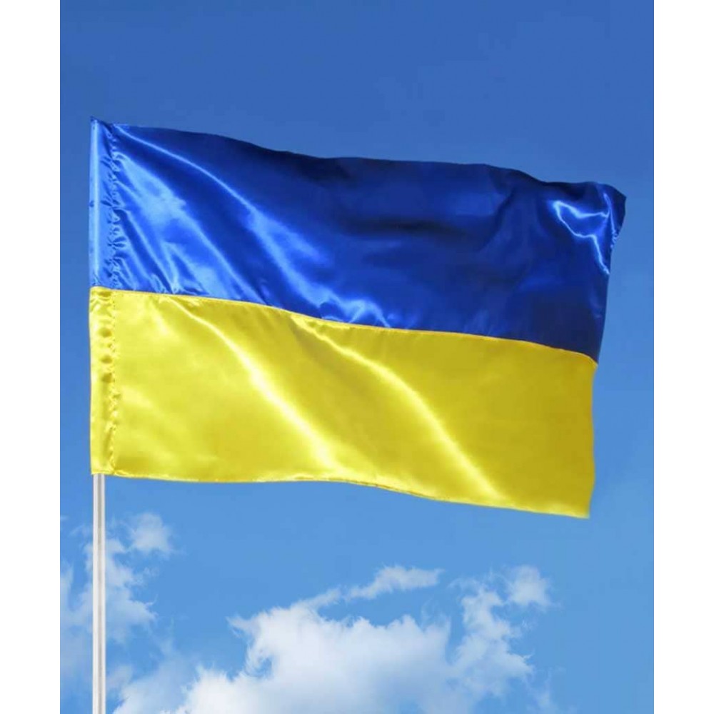 Прапор 140см*90см УКРАЇНА атласний. Є карман для штока, сам шток продається окремо.