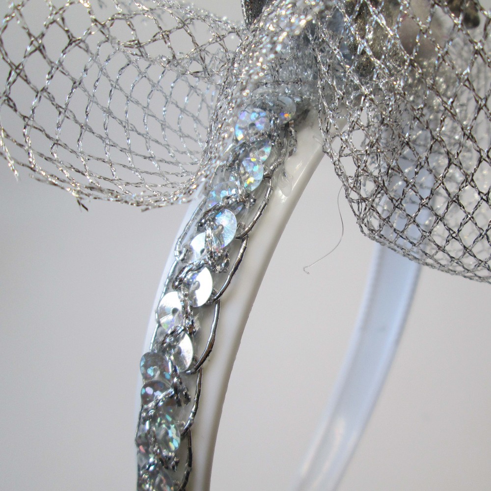 Интернет магазин Подарок-ТУТ предлагает Вам купить оптом по-настоящему зимний и стильный обруч с веточками ели и декоративными цветами, полностью ручной работы. Очаровательный рождественский ободок – нарядный аксессуар для фотосессии, корпоратива, создания уникального образа или любого другого торжества. серебряные декоративные цветы пуансетии с литыми веточками ели смотрятся просто великолепно и очень празднично, а также создают праздничное настроение и идеально впишутся в новогодние торжества. Композиция надежно закреплена на пластиковом белом ободке универсального размера, украшенном белой репсовой лентой. Это новогоднее украшение на голову сделает Ваш наряд на любой праздничной вечеринке и будет изюминкой образа, как вишенка на торте.