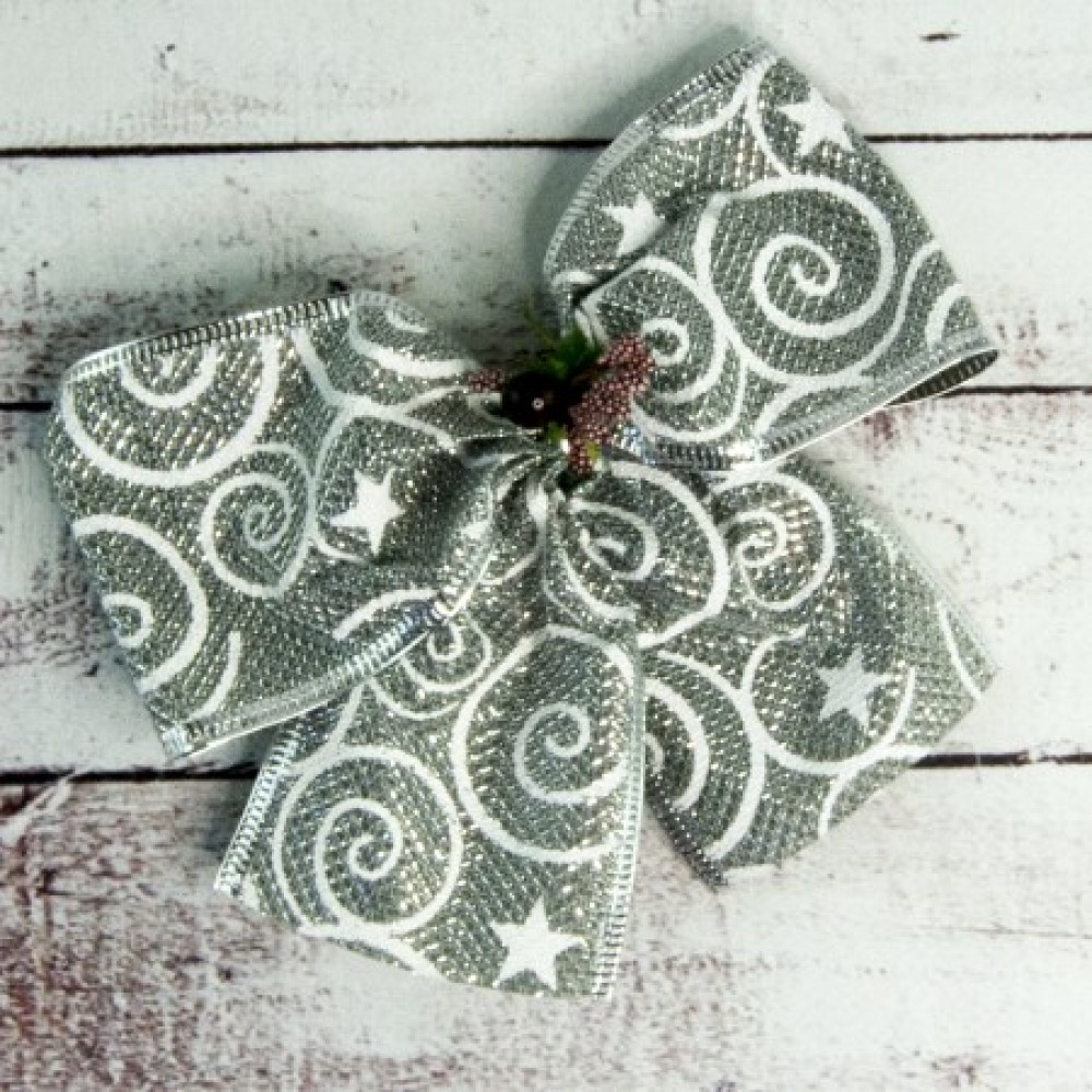 Бант Рождественский Серебряный с узором (уп 5шт) 9246
