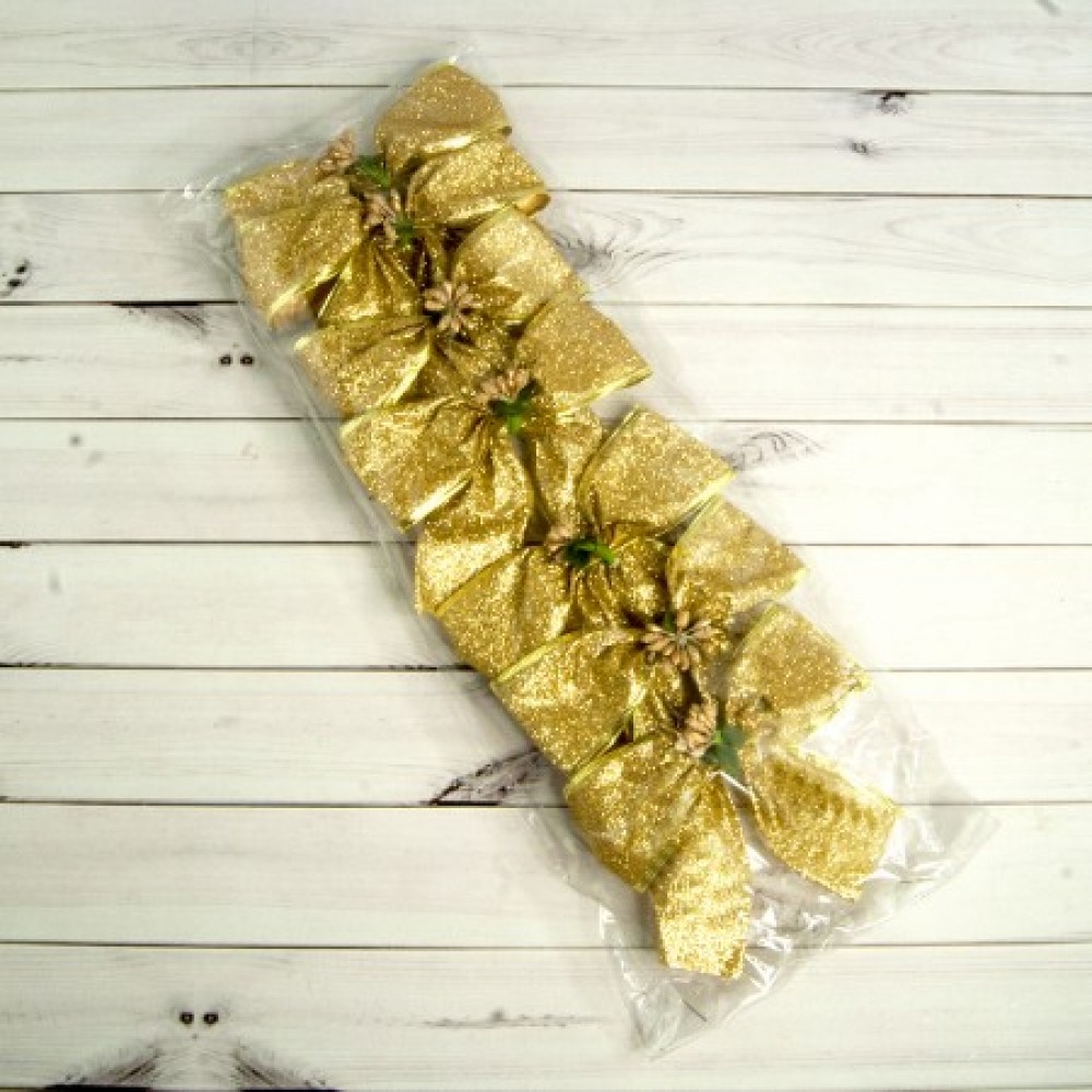 — это универсальный атрибут праздника, который поможет создать праздничное настроение, комфорт и уют в каждом уголке вашего дома. Сфера их применения ограничивается только Вашей фантазией. Бант рождественский Золотой (уп 5шт) 9248 незаменимая составляющая для декорации помещений и арт - пространства, тематического оформления баров, клубов, магазинов, незаменимый атрибут для фотостудий в преддверии Нового Года и Рождества. Этот яркий и привлекательный новогодний декор изготовлен из блестящей Золотой стрічка с проволочным краем. Мы предлагаем Вам купить Бант рождественский в интернет - магазине Украина (KП) и погрузиться в атмосферу праздника. Будьте в тренде - дополните свой декор оригинальным декором, который Вы можете подобрать на нашем сайте.