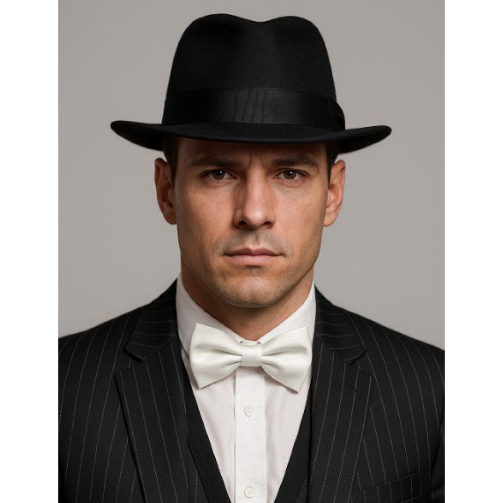 Такой аксессуар часто выбирают для гангстерского образа, мужских наборов на вечеринку, вечеров в стиле мафии, праздничных корпоративов или выступлений. Белый цвет смотрится особенно эффектно в комбинации с чёрным костюмом, подтяжками или ретро-шляпой — получается именно тот контраст, который ассоциируется с эпохой сухого закона и джентльменским стилем. Бабочка подходит и для классических мероприятий: свадьба, выпускной, постановки, мужская сцена, съёмки клипов и контент в соцсетях.