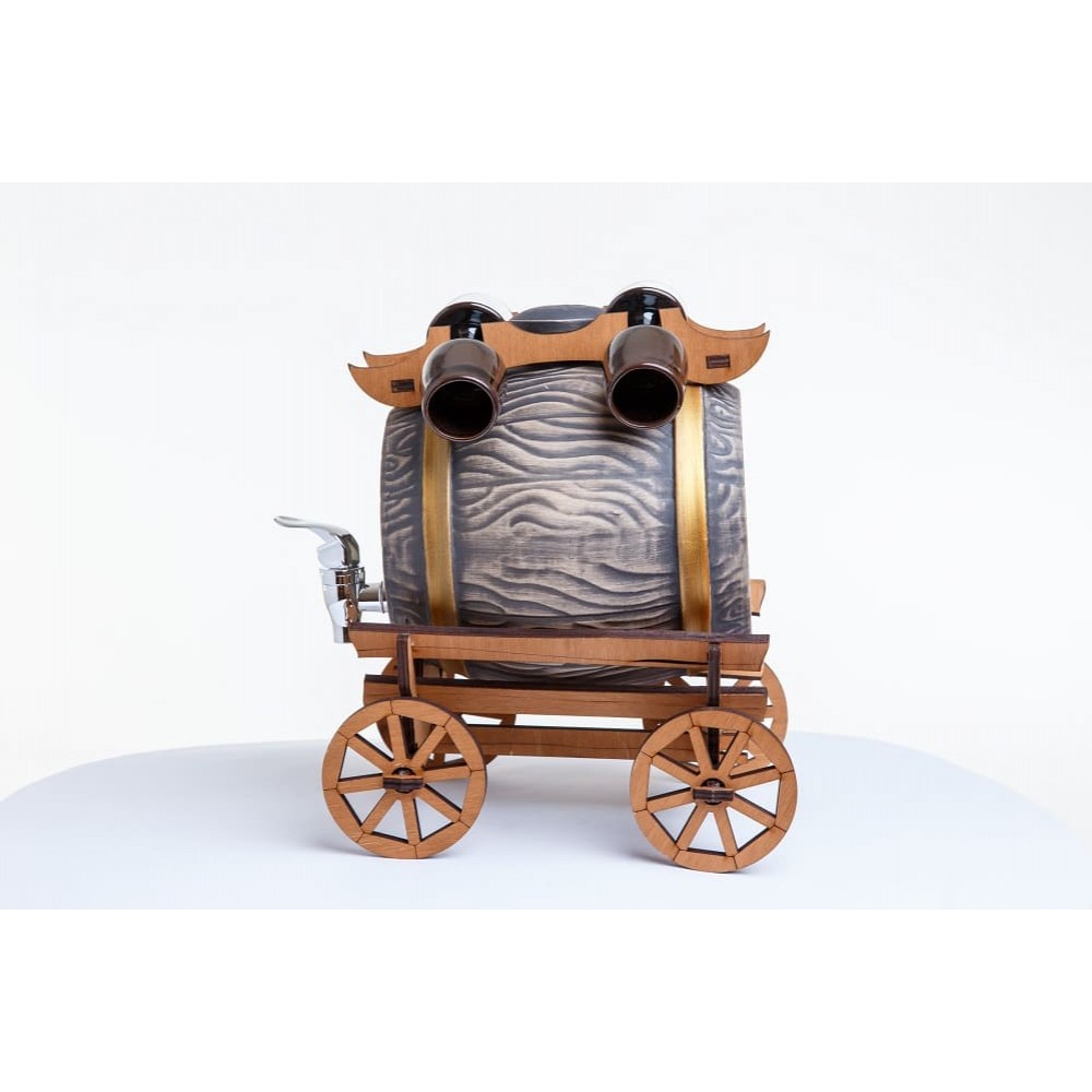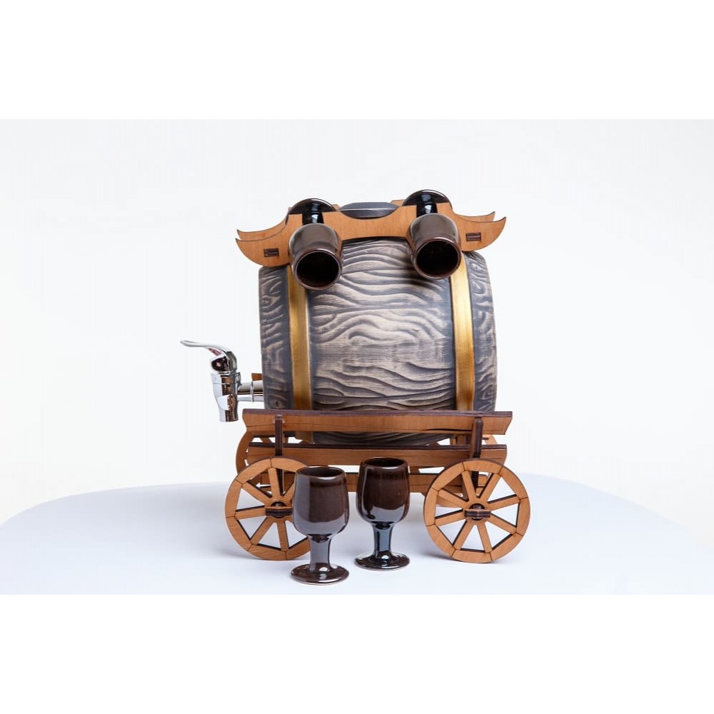 Бочка керамическая 3л на телеге со рюмками