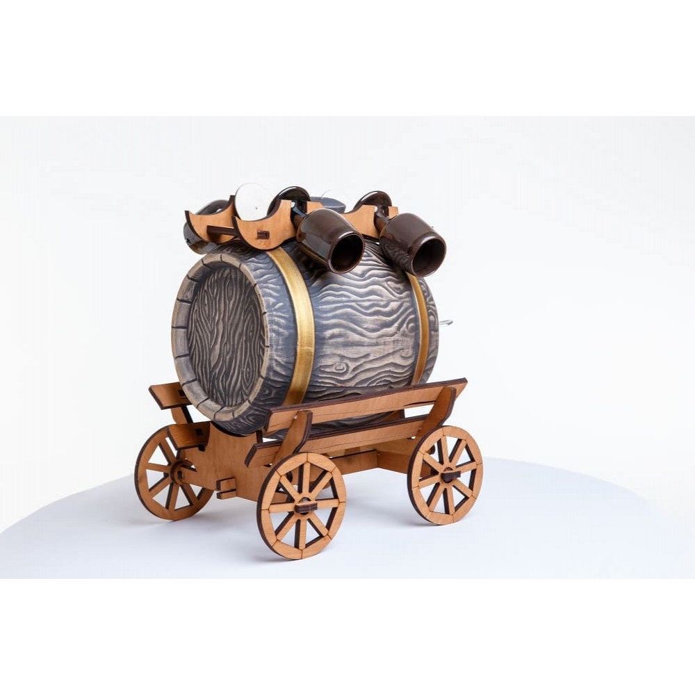 В комплект входит: бочка, подставка, 4 бокала.