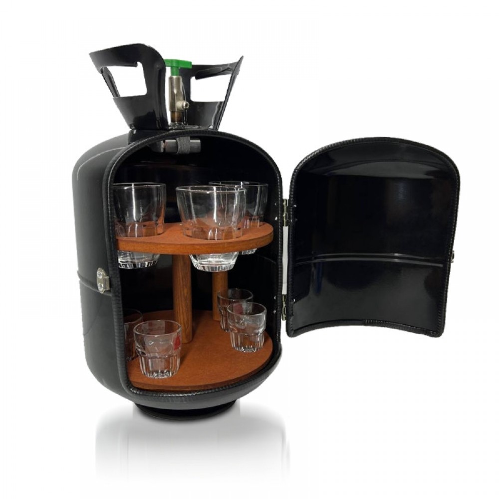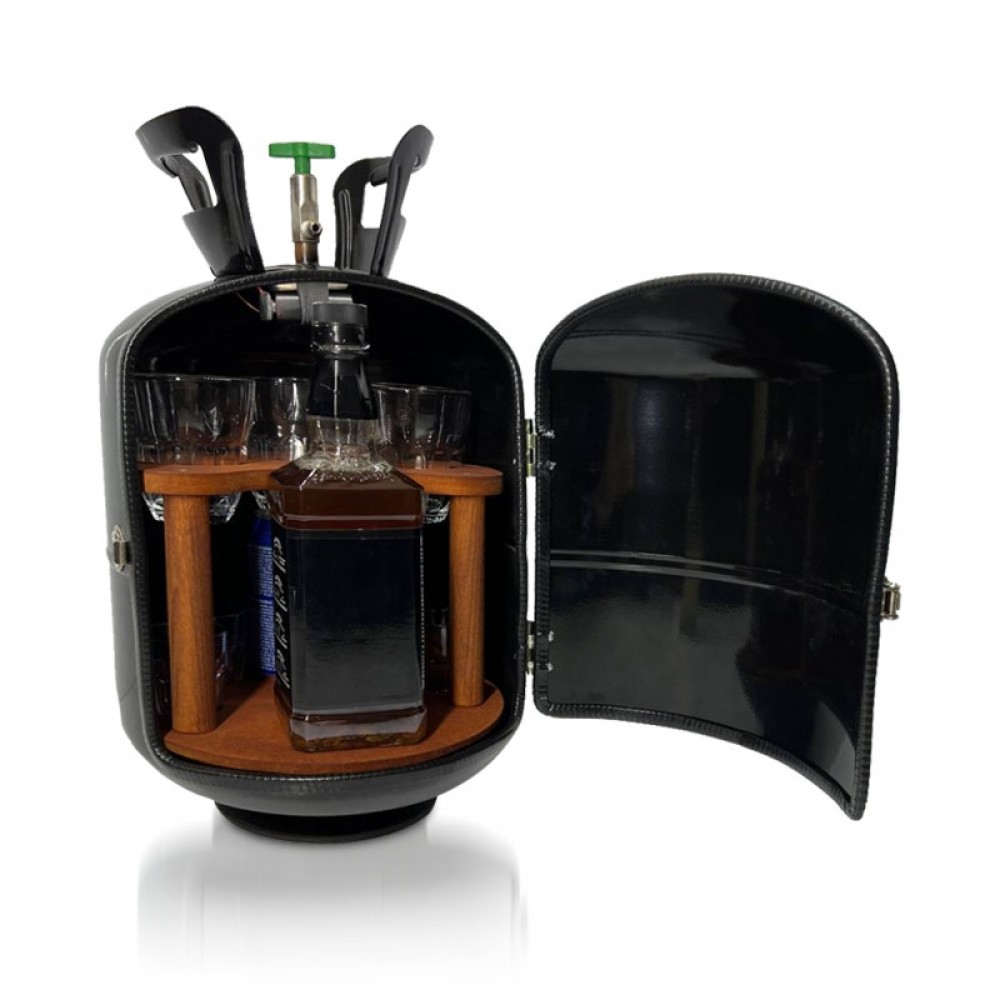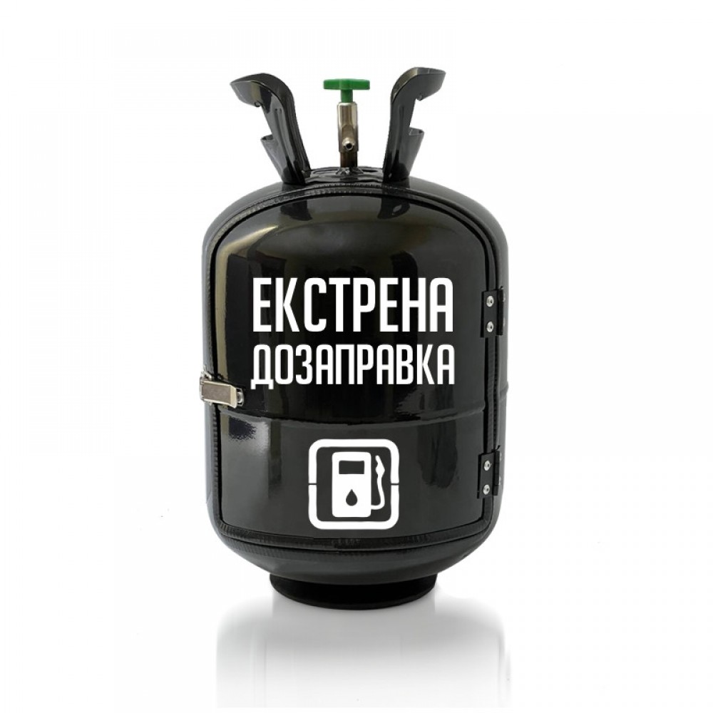 В житті бувають моменти, коли потрібна особлива "дозаправка". Цей оригінальний міні-бар у формі газового балона з гумористичним написом "Екстрена дозаправка" створений саме для таких випадків. Чорний матовий корпус з білими контрастними написами та символом заправки створює забавну гру смислів і піднімає настрій.