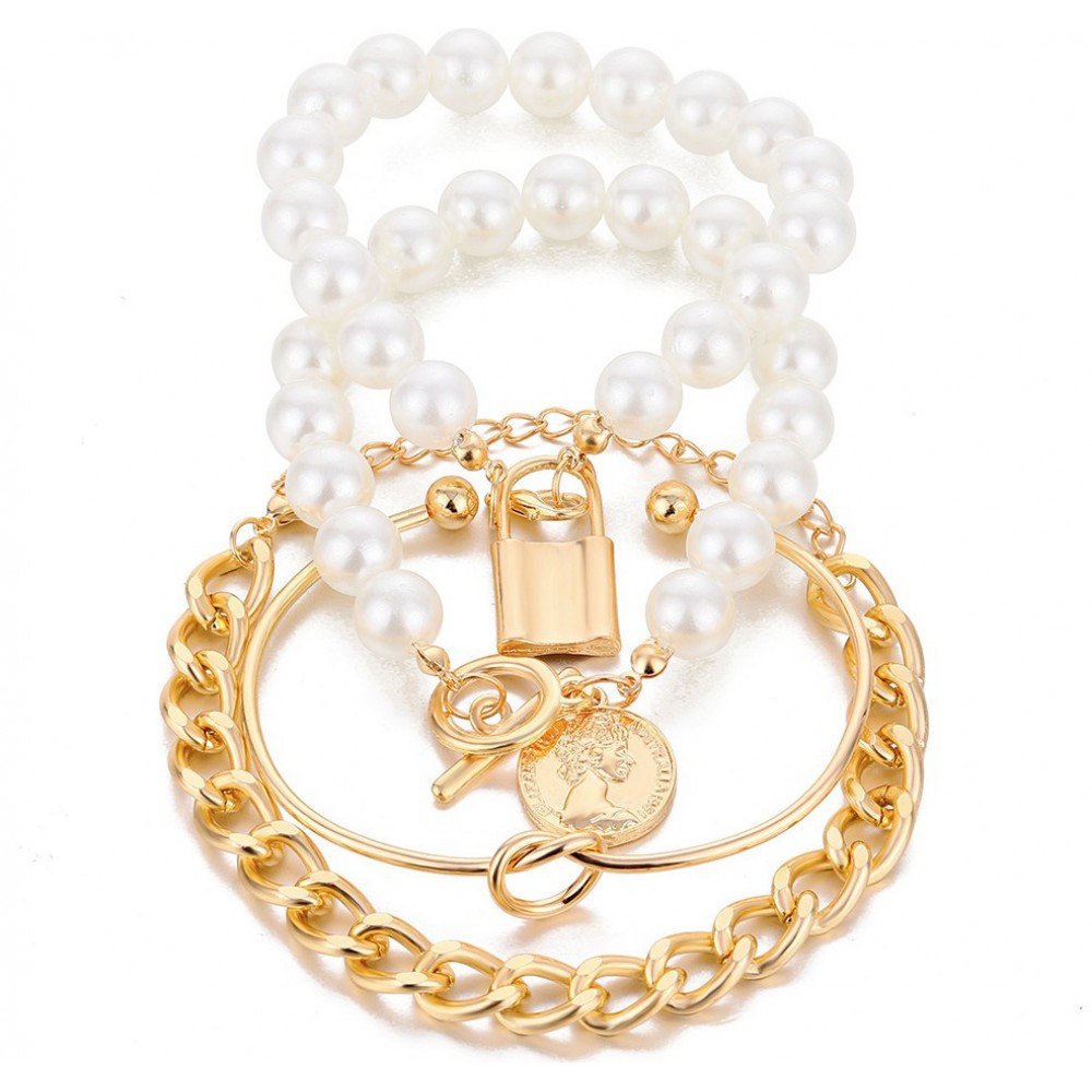 Набор из браслетов и анклета с жемчугом и золотистой цепью — выглядит дорого и сразу притягивает внимание. Отлично дополняет как повседневные, так и вечерние образы. Лёгкий, стильный аксессуар, который легко сочетать с другими украшениями.