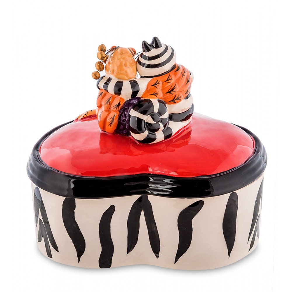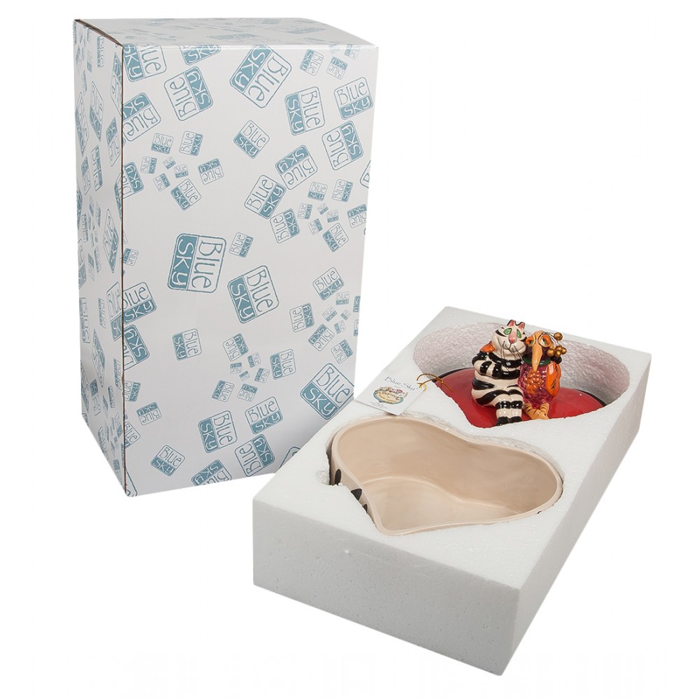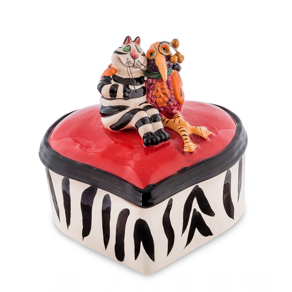 Шкатулка ''Кот Кланси и птичка'' высотой 31 см.; Кот Кланси живёт очень насыщенной жизнью: клянчит еду, спит, охотится на мелкую живность, но одновременно есть на дружеской ноге с небольшой птичкой.