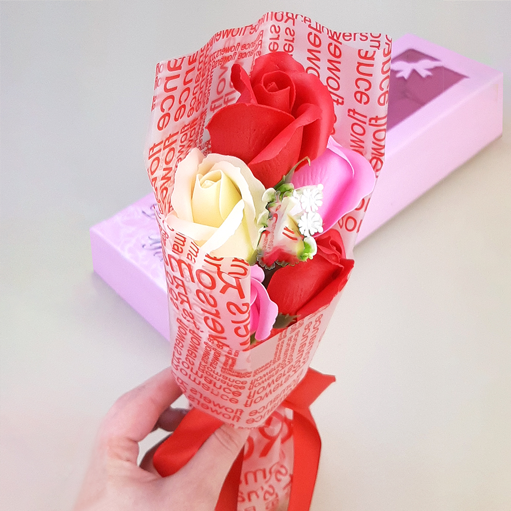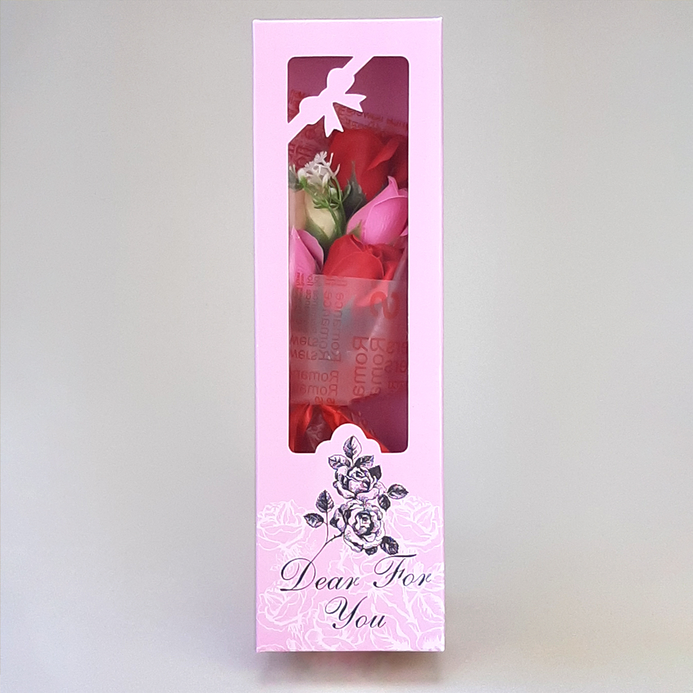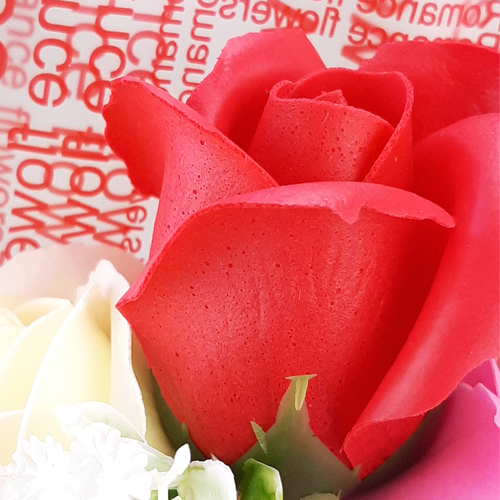 Мыло – это то, чем мы пользуемся каждый день, не задумываясь о том, что помимо косметических и гигиенических у мыла есть еще и эстетические свойства. Между тем ценители мыльного искусства уже нашли, как применить это в интерьере и в быту. Букет роз из мыла Dear for you (красный) может не только заменять собою мыло, но и выполнять декоративную функцию, к тому же, благодаря фирменной упаковке, для его размещения не требуется ваза или какой-либо сосуд. Цветы из мыла создадут торжественную атмосферу и наполнят помещение. Мыльные розы украсят ванную комнату, прихожую, холл и окутают помещение нежным изысканным ароматом. Гармонично будут смотреться на столах в кафе и ресторанах, салонах красоты и офисах. Такие композиции будут радовать глаз, вызывать восторг и улыбку спустя многие недели после праздника. Букет роз из мыла Dear for you (красный), может простоять несколько лет, если его использовать не по назначению, а как элемент декора. Мыльные цветы хранятся около 3-х лет, если соблюдая правила ухода: не ставить под лампу и люстру, не поливать, можно обработать эфирными маслами для придания аромата. После того как он достаточно порадует глаз, его можно будет наконец-то применить по назначению, как простое мыло. Мыльные цветы могут использоваться в бане, сауне или горячей ванне. Во время использования распространяют приятный аромат только что срезанных цветов. Лепестки помещаются в наполненную водой ванну или растираются в ладонях до образования пены. Цветы из мыла изготовлены из высококачественной мыльной основы с применением безопасных ненавязчивых отдушек. Розы - настоящий шедевр мыльного искусства. В изготовлении этих уникальных роз используются лепестки, которые изготовлены из полотна вспененного мыла. Цветы создаются по особой технологии, поэтому лепестки выглядят как живые, и их нежный аромат сохраняется очень долго. Максимальная детализация и схожесть с настоящими живыми цветами придает им особое изящество.