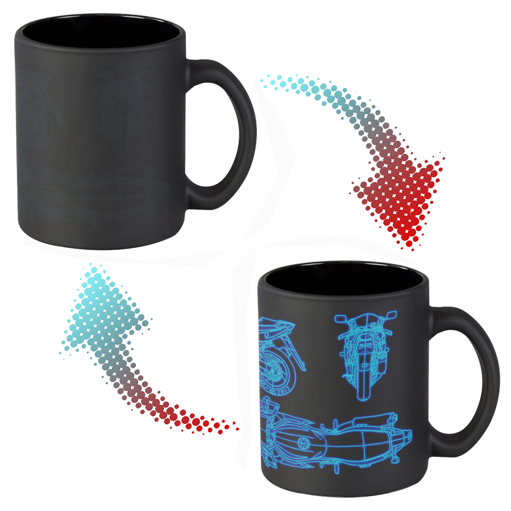 Чашка хамелеон 66053 ЧРЖ Ducati neon (черная) с виду обычная однотонная чашка, но если залить горячий напиток, как на ней появляется замысловатая картинка – чертежи и тех характеристики мотоцикла Дукатти в неоне. Объем керамической чашки 300 мл, благодаря чему, Вы можете, целиком и полностью насладится любимым напитком. Такую чашку можно купить как забавный и особенный подарок мотогонщику, купить автолюбителю или просто подарить своему авто мастеру в знак внимания. А с этой чашкой, точно будет обеспечено основное внимание. Чашки собственного производства возможно под заказ любое количество. Широкий выбор чашек и кружек с оригинальным дизайном для любого повода Вы можете купить в интернет магазине Подарок-ТУТ.