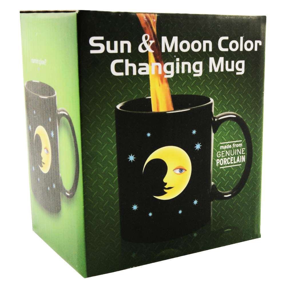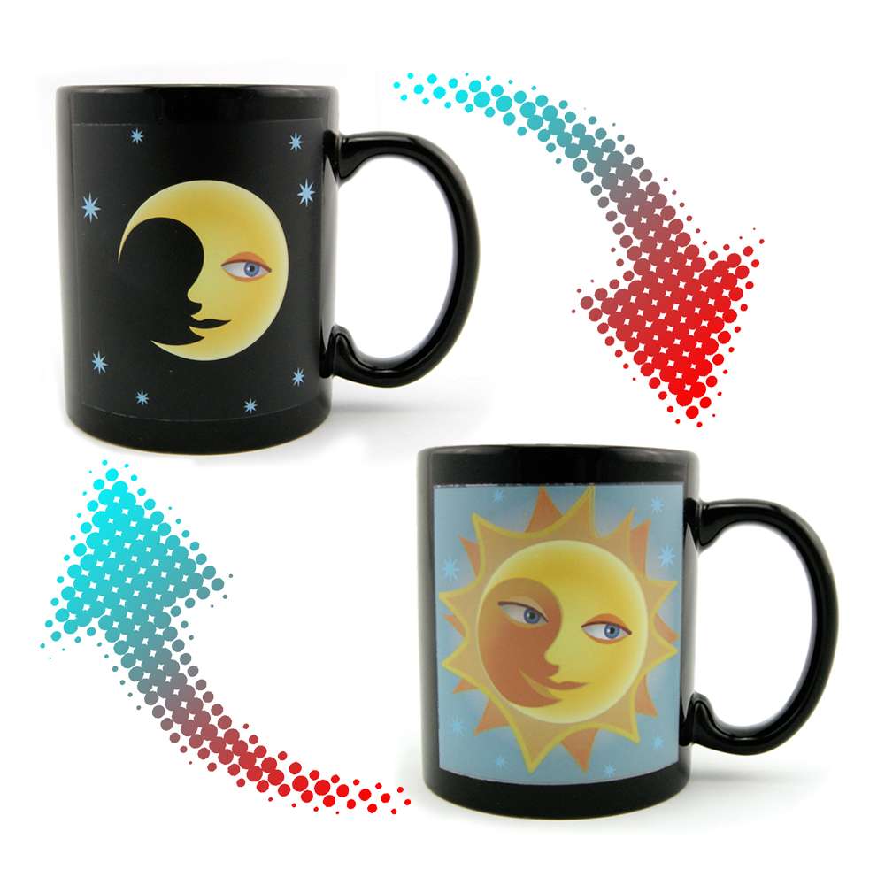 Почти каждый не представляет начало своего дня без чашки бодрящего кофе или чая. Поэтому, на любой кухне, чашка является обязательным атрибутом. И совсем не важно, какой напиток выбирает человек – кружка, для утреннего напитка, всегда достаточно важна. Необыкновенная кружка-хамелеон Солнце и луна, расскажет Вам о начале нового трудового дня. Наполняя кружку горячей водой, рисунок луны, нанесенный на чашку, сменится на солнце. Когда чашка остынет, изображение изменится на луну. Оригинальный подарок, станет хорошим сюрпризом для дорогих Вам людей. В Интернет-магазине Подарок-ТУТ большой выбор оригинальных чашек и необычных вещиц.