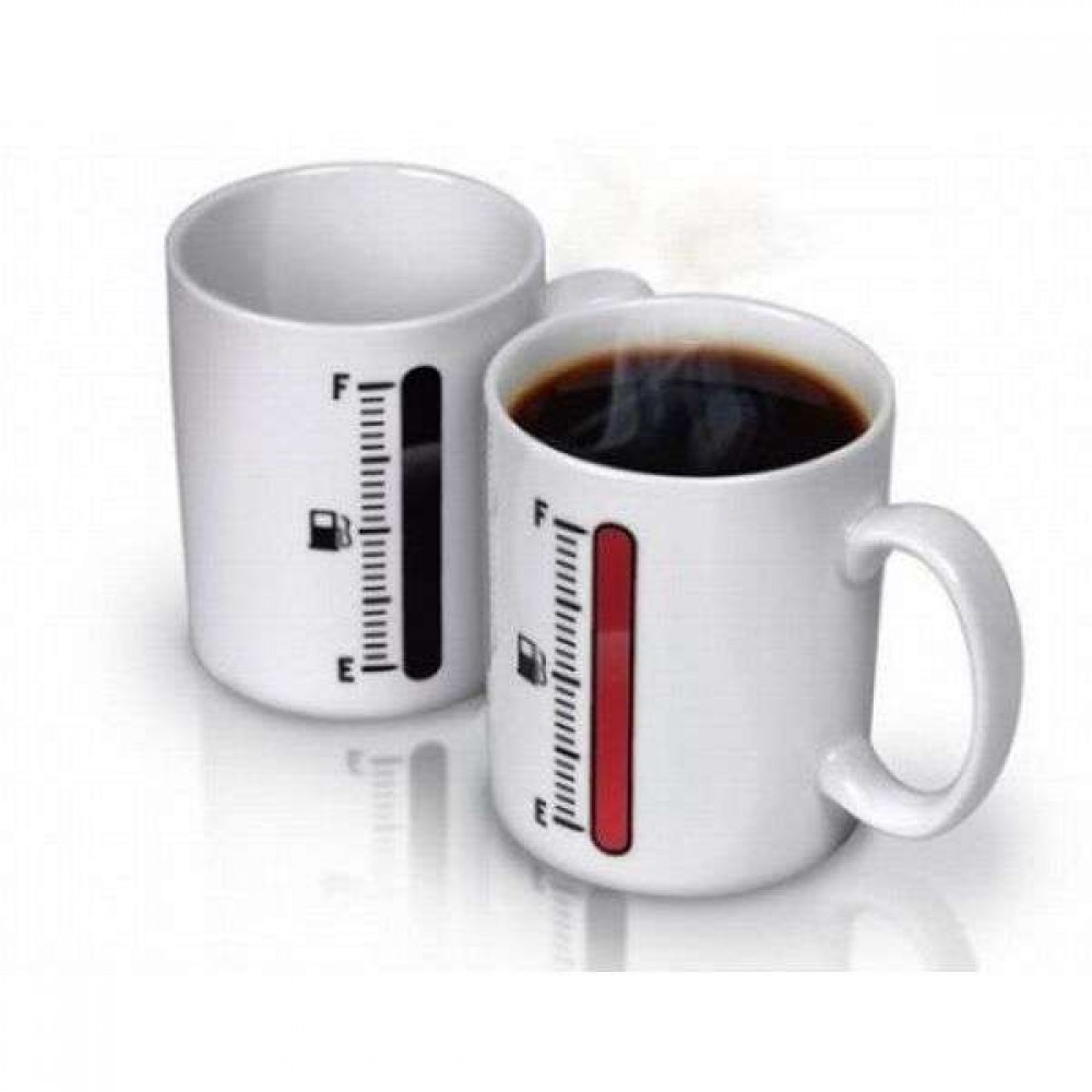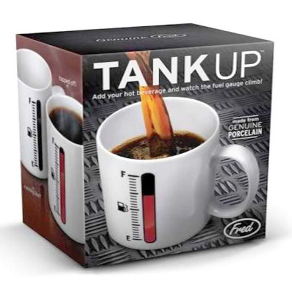 Чашка TANK UP выполнена с индикатором топлива в баке. При заполнении чашки теплым напитком, видно как повышается шкала топлива в самой чашке, а черный цвет индикатора меняется на красный. Это позволит сразу увидеть, какое еще количество топлива в Вашей чашке. Чашка с неповторимым дизайном - это оригинальный сюрприз по хорошей цене. Он способен осчастливить и взрослых, и детей, которые с удовольствиям будут следить за изменениями в чашке. Если в выборе подарка Вы задаетесь целью порадовать своего парня или приятеля, преподнесите ему необычный презент. Купите креативную чашку в интернет-магазине Подарок-ТУТ