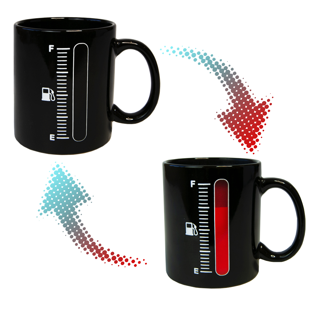 Чашка TANK UP выполнена с индикатором топлива в баке. При заполнении чашки теплым напитком, видно как повышается шкала топлива в самой чашке, а черный цвет индикатора меняется на красный. Это позволит сразу увидеть, какое еще количество топлива в Вашей чашке. Чашка с неповторимым дизайном - это оригинальный сюрприз по хорошей цене. Он способен осчастливить и взрослых, и детей, которые с удовольствиям будут следить за изменениями в чашке. Если в выборе подарка Вы задаетесь целью порадовать своего парня или приятеля, преподнесите ему необычный презент. Купите креативную чашку в интернет-магазине Подарок-ТУТ