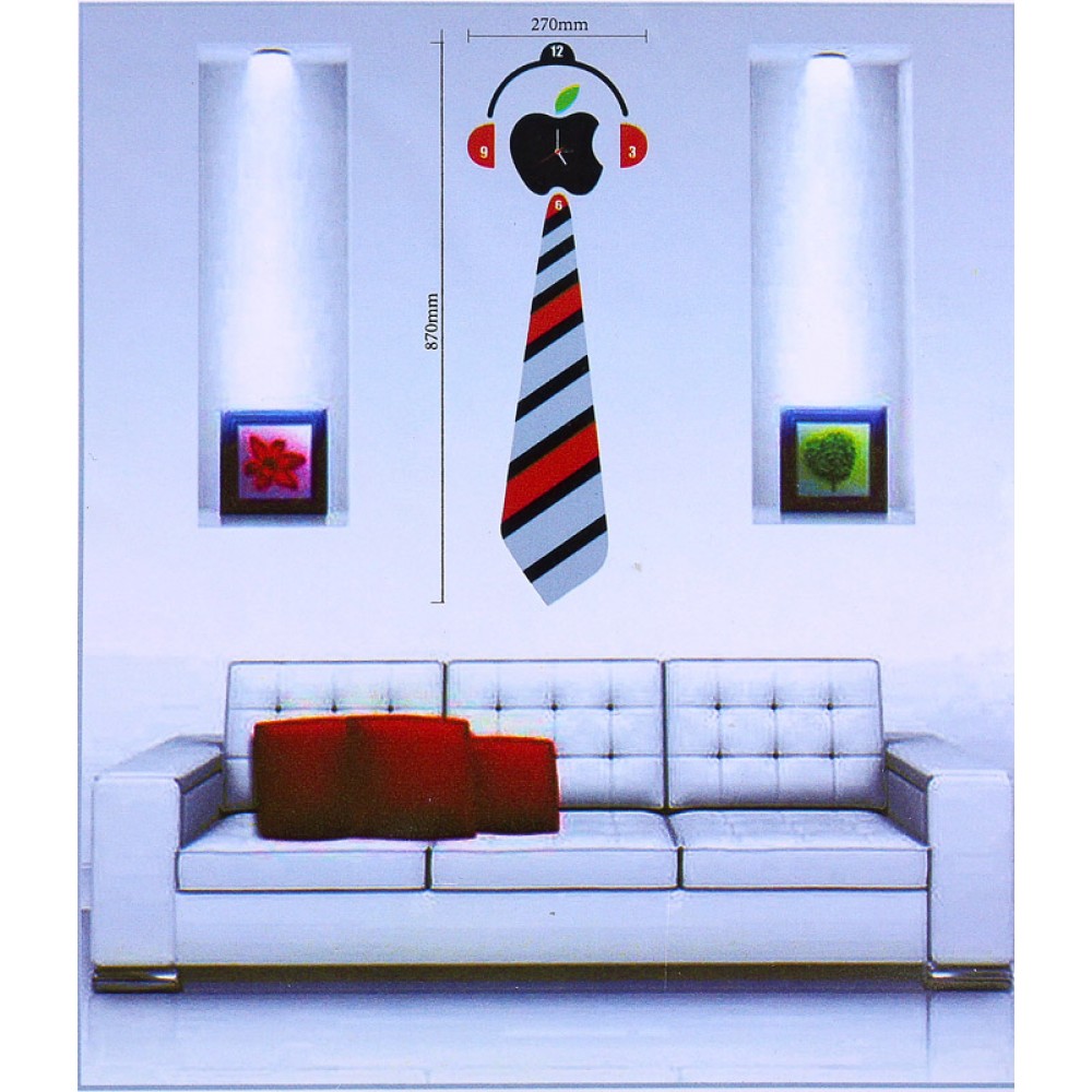 Часы наклейки на стену "галстук"