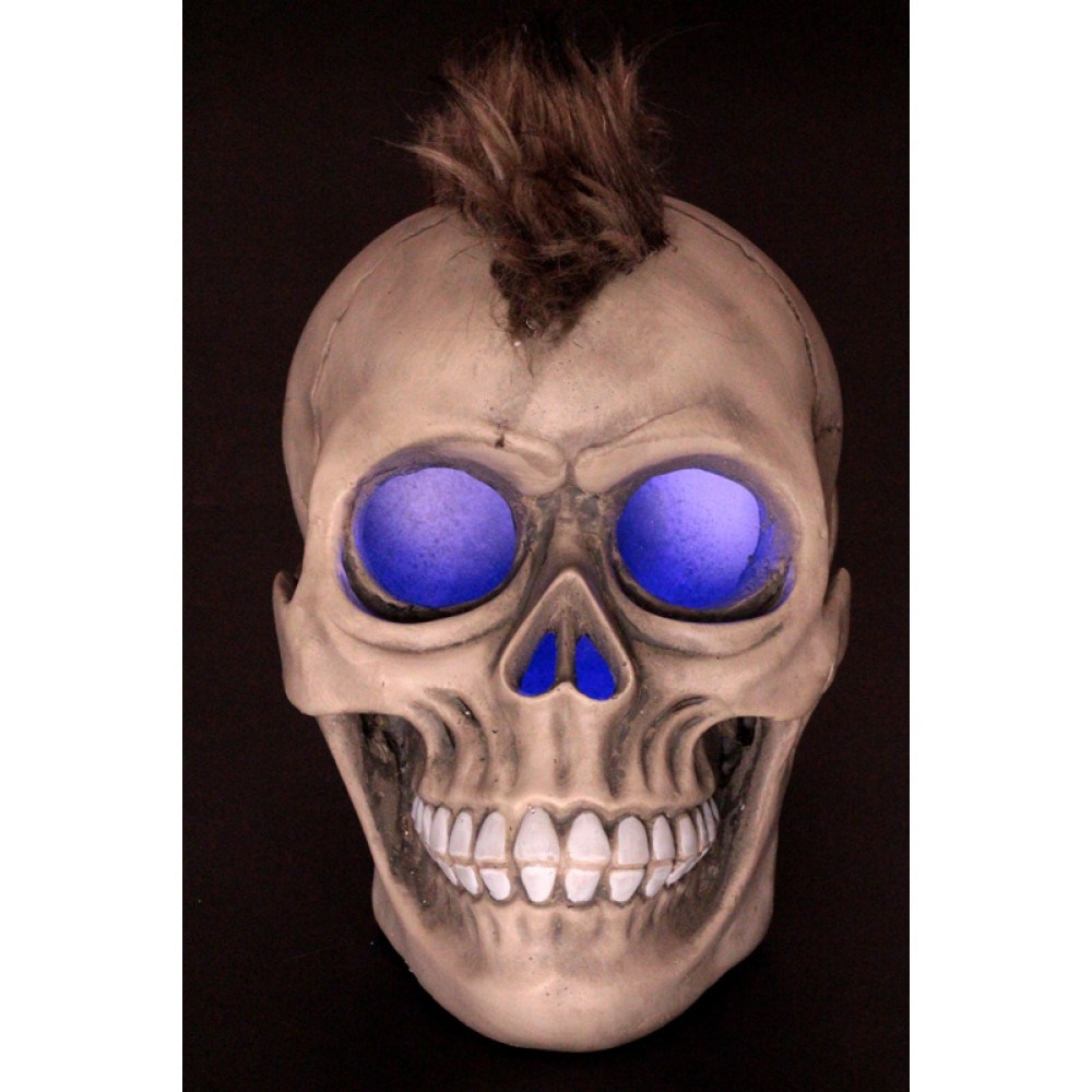Череп с панковским чубчиком и мини лампочкой – ночником в комплекте. Крепится на стену за веревочную петлю. Декор из-за своей конструкции не может быть настольным вариантом.Замечательный декор на хеллоуин или пиратскую вечеринку.