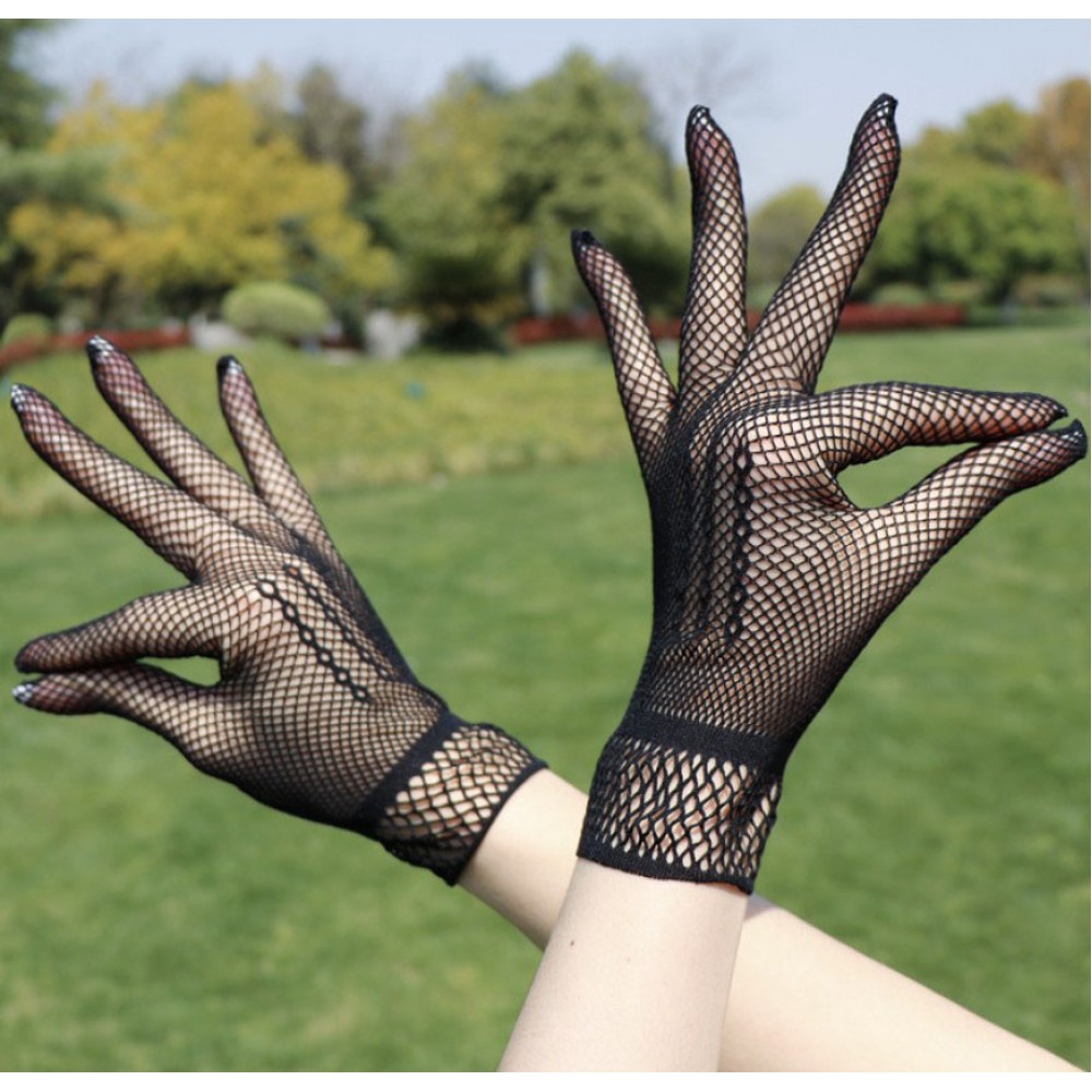 Эластичный материал мягко тянется и подстраивается под ладонь, благодаря чему универсальный размер подходит большинству взрослых рук. Манжета плотно, но деликатно фиксируется на запястье и не сползает во время танцев или активных поз перед камерой. Сеточка средней плотности — рисунок хорошо читается на фото, а сами перчатки не рвутся от первого движения при аккуратном использовании.