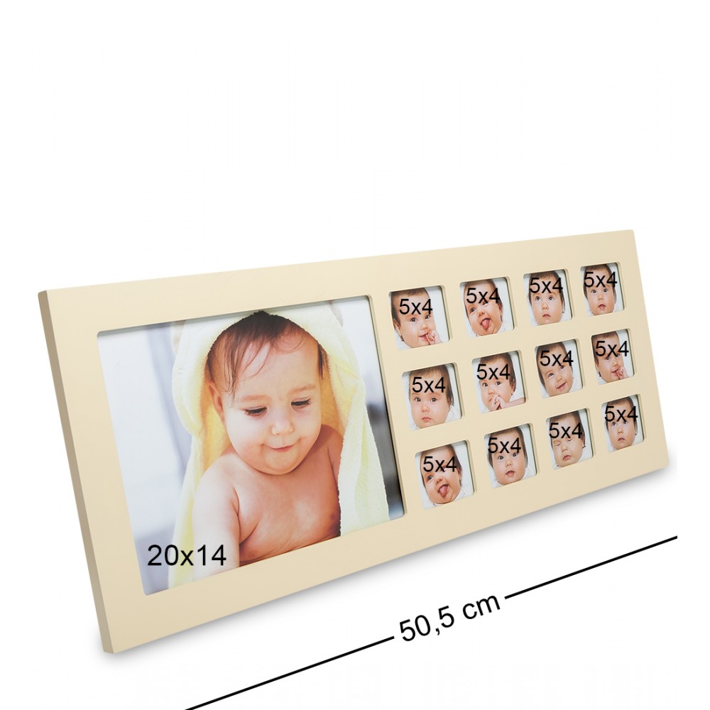 Удобная рамка из внушительного и не маркого материала, которым служит светло-желтый МДФ. Здесь помещается тринадцать фотографий, одна большая и 12 небольшого размера. Рамка идеально подходит для создания фотоальбома о первом годе жизни вашего ребенка.