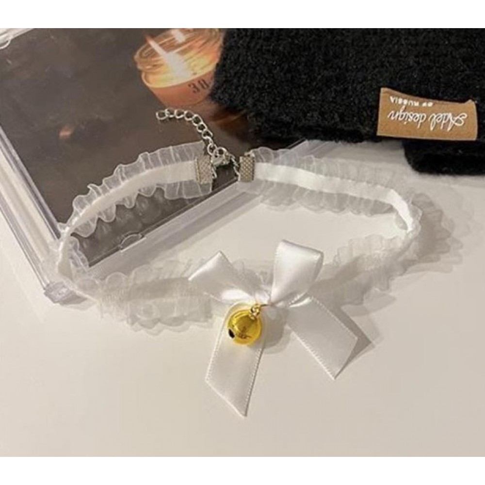 Чокер «Белая кошечка»: лента с рюшами, бантик и колокольчик, регулируемая застёжка